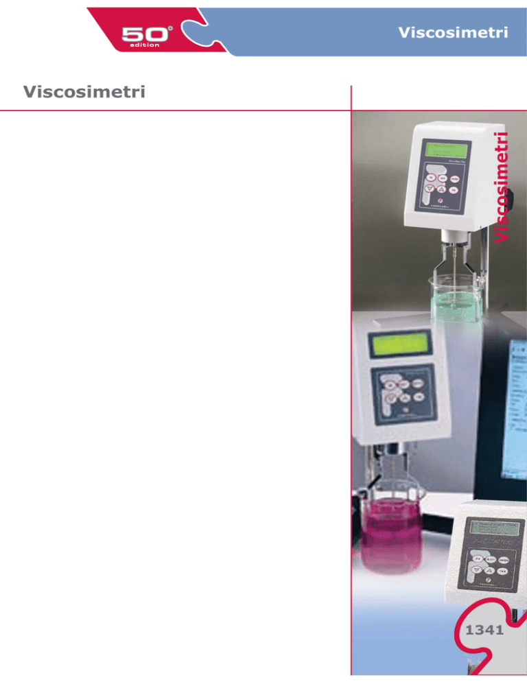Viscosimetri Viscosimetri Viscosimetri 1341 Viscosimetri Strumenti In vetro Di Ubbelohde 28LZ01AA Forniti con certificato di taratura. In vetro borosilicato. Per misure di viscosità cinematica di prodotti petroliferi, secondo ASTM D 445 e D 446. Quantità minima di campione 11 ml. Richiedono un bagno di termostatazione con profondità di mm 240. ASTM n. Campo di viscosità cSt Costante 0 0C 0B 1 1C 1B 2 2C 2B 3 3C 3B 4 4C 4B 5 0,3...1 0,6...3 1...5 2...10 6...30 10...50 20...100 60...300 100...500 200...1000 500...3000 1000...5000 2000...10000 6000...30000 10000...50000 20000...100000 0,001 0,003 0,005 0,01 0,03 0,05 0,1 0,3 0,5 1 3 5 10 30 50 100 Codice 289322703 289322704 289322705 289322706 289322707 289322708 289322709 289322710 289322711 289322712 289322713 289322714 289322715 289322716 289322717 289322718 Di Cannon-Fenske 28LZ01AB Per liquidi trasparenti In vetro borosilicato. Per misure di viscosità cinematica di prodotti petroliferi trasparenti, secondo ASTM D 445. Quantità minima ml 7. Richiedono bagno di termostatazione con profondità di mm 230. Forniti con certificato di taratura. Per liquidi opachi In vetro borosilicato. Per misure di viscosità cinematica di prodotti petroliferi opachi e olii lubrificanti, secondo ASTM D 445. Richiedono bagno di termostatazione profondità di mm 230-240. Forniti con certificato di taratura. Modello ASTM n. Campo viscosità cSt Costante Fig. Liquidi trasparenti Liquidi trasparenti Liquidi trasparenti Liquidi trasparenti Liquidi trasparenti Liquidi trasparenti Liquidi trasparenti Liquidi trasparenti Liquidi trasparenti Liquidi trasparenti Liquidi trasparenti Liquidi trasparenti Liquidi opachi Liquidi opachi Liquidi opachi Liquidi opachi Liquidi opachi Liquidi opachi Liquidi opachi Liquidi opachi Liquidi opachi Liquidi opachi Liquidi opachi Liquidi opachi 25 50 75 100 150 200 300 350 400 450 500 600 25 50 75 100 150 200 300 350 400 450 500 600 0,5...2 0,8...4 1,6...8 3...15 7...35 20...100 50...250 100...500 240...1200 500...2500 1600...8000 4000...20000 0,5...2 0,8...4 1,6...8 3...15 7...35 20...100 50...250 100...500 240...1200 500...2500 1600...8000 4000...20000 0,002 0,004 0,008 0,015 0,035 0,1 0,25 0,5 1,2 2,5 8 20 0,002 0,004 0,008 0,015 0,035 0,1 0,25 0,5 1,2 2,5 8 20 1 1 1 1 1 1 1 1 1 1 1 1 2 2 2 2 2 2 2 2 2 2 2 2 1342 Codice 289322679 289322680 289322681 289322682 289322683 289322684 289322685 289322686 289322687 289322688 289322689 289322690 289322691 289322692 289322693 289322694 289322695 289322696 289322697 289322698 289322699 289322700 289322701 289322702 www.carloerbareagenti.com - Tel. +39.02.95325.1 - Fax +39.02.95325.310 Viscosimetri Strumenti Strumenti A Visco Basic plus 28LZ01AC Adatto per fluidi ad alta viscosita' Lettura diretta di tutti i parametri su display a cristalli liquidi LCD. Possibilita' di impostare differenti linguaggi di dialogo per l'operatore (inglese, francese, italiano, tedesco ecc.). Possibilita' da parte dell'operatore di calibrare il viscosimetro. Funzione autorange per determinare la massima viscosita' con ogni combinazione rotore/velocità. Funzione AUTO-TEST con allarme acustico e visivo in caso di malfunzionamento dello strumento. L'allarme acustico scatta anche quando il sistema lavora al di sotto del 15 % del fondo scala. Protezione di sicurezza contro sbalzi di tensione. Il modello Visco Basic Plus R e Visco Basic Plus L permettono la determinazione della viscosità relativa e della viscosità assoluta. 18 velocità preselezionate (da 0,3 a 100 rpm). B C D Lo strumento viene fornito completo di:: - Testata di misura - Stativo di supporto - N. 6 rotori per Visco Basic Plus R e Visco Basic Plus H - N. 4 rotori per Visco Basic Plus L - Supporto rotori - Protezione rotori - Manuale d'uso E F Modello Tipo Range di misura cPs Accuratezza cPs Ripetibilità cPs Risoluzione cPs Alimentazione V/Hz Peso kg Visco Basic Plus L Visco Basic Plus R Visco Basic Plus H Viscosità bassa Viscosità media Viscosità alta 20...2.000.000 100...13.000.000 320...106.000.000 ± 1% del fondo scala ± 1% del fondo scala ± 1% del fondo scala 0,20% 0,20% 0,20% 0,1...100 0,1...100 0,1...100 5 5 5 100/240 Vac - 50 Hz 100/240 Vac - 50 Hz 100/240 Vac - 50 Hz Codice 284001717 284001716 284001715 G I Codice Accessori Soluzioni di olio standard RT50, flacone da 470 ml - 48 cP Soluzioni di olio standard RT1000, flacone da 470 ml - 960 cP Soluzioni di olio standard RT5000, flacone da 470 ml - 4800 cP Soluzioni di olio standard RT12500, flacone da 470 ml - 12000 cP Adattatore per piccoli volumi APM senza rotori Set di 3 rotori per APM, Mod. JHTL (per Mod.L) Set di 4 rotori per APM, Mod. JHTL (per Mod.R o H) Sonda temperatura per APM Mod. S/APM/2 Valigia di trasporto, conforme alle direttive Europee 89/336/CE, Marcatura CE 284001917 284001743 284001919 284001920 284001731 284001703 284001704 284001732 284001744 L M N Visco Star Plus Adatto per fluidi a media viscosita' 28LZ01AD Lettura diretta di tutti i parametri su display a cristalli liquidi LCD. Determinazione della viscosità relativa e della viscosita' assoluta. Possibilità di memorizzare fino a 10 metodi di lavoro e di impostare differenti linguaggi di dialogo per l'operatore (inglese, francese, italiano, tedesco ecc.). Temperatura del campione rilevata con sonda PT100. Lettura della viscosità come viscosità dinamica (cP o mPas), oppure come viscosità cinematica (cSt). Possibilità di determinare il fattore di taglio e di stress con rotori coassiali. Possibilità da parte dell'operatore di calibrare il viscosimetro e la termosonda PT100. Funzione autorange per determinare la massima viscosità con ogni combinazione rotore/velocità. Funzione Datalogger che permette di scaricare i risultati ottenuti in un file di Excel, grazie al software in ambiente Windows fornito a corredo dello strumento. Ceck-up automatico delle velocità per un corretto funzionamento. Allarme acustico in caso di malfunzionamento dello strumento. Protezione di sicurezza contro sbalzi di tensione. 19 
