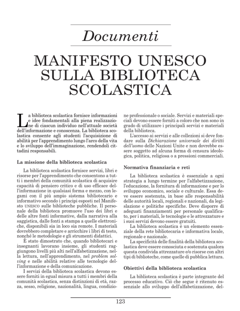 Documenti MANIFESTO UNESCO SULLA BIBLIOTECA SCOLASTICA