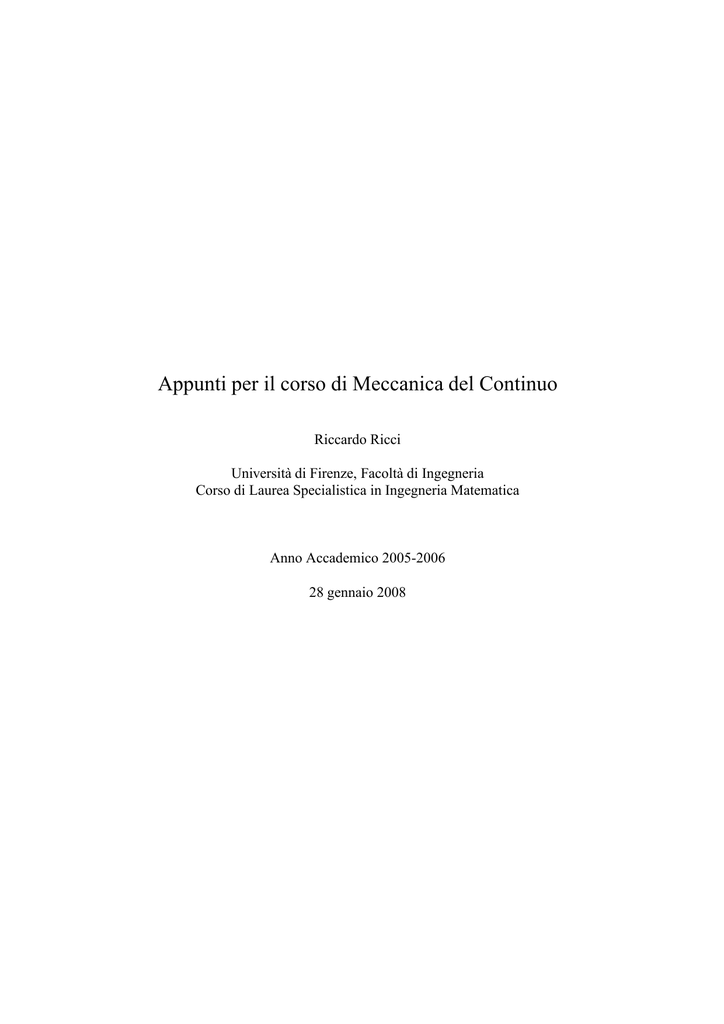Appunti per il corso di Meccanica del Continuo