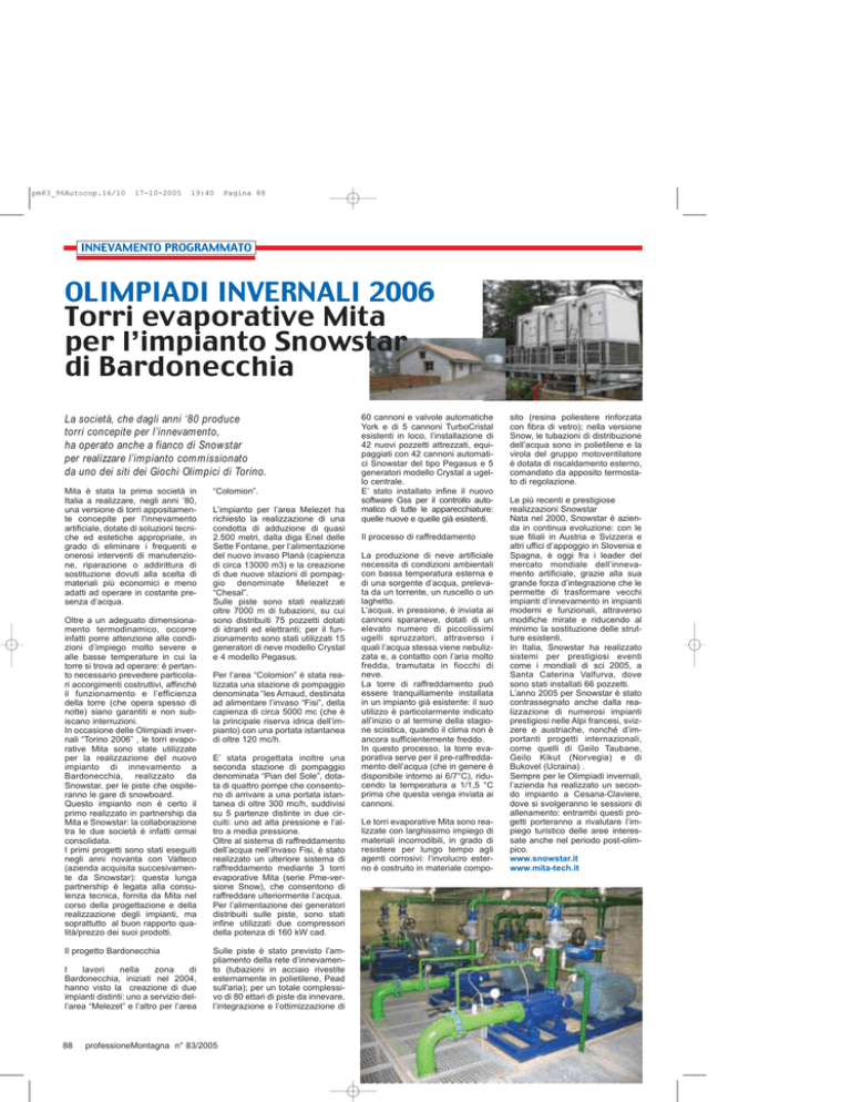 OLIMPIADI INVERNALI 2006 Torri evaporative Mita per l`impianto