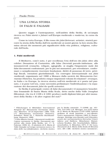 Paolo Preto UNA LUNGA STORIA DI FALSI E FALSARI Questo saggio è l’anticipazione, nell’ambito della Sicilia, di un’ampia ricerca su Falsi storici e falsari nell’Europa medievale e moderna, in corso da anni. Come in tutta Europa, il filo rosso dei falsi (letterari, artistici, storici) percorre la storia della Sicilia dall’età medievale ai nostri giorni; la loro storia illumina alcuni dei momenti più significativi della vita politica, religiosa, culturale dell’isola. 1. Falsi medievali Il Medioevo, com’è noto, è per eccellenza l’età dell’oro dei falsi; oltre alla celebre Donazione di Costantino, alle false Decretali pseudo-isidoriane, alle innumerevoli cronache, reliquie, agiografie, si staglia l’imponente mole dei falsi documenti confezionati, per lo più nei monasteri, per retrodatare, confermare o semplicemente inventare fondazioni, diritti di possesso di terre, privilegi fiscali, esenzioni giurisdizionali. Un convegno internazionale sui falsi medievali, organizzato nel 1986 a Monaco dalla società dei Monumenta Germaniae Historica, ha prodotto cinque imponenti volumi di relazioni1; ovunque, in Italia e in Europa, la ricerca storica sull’età medievale si è posta nel passato, e si pone tutt’ora, come necessità preliminare l’individuazione e la separazione dei documenti falsi da quelli autentici. In Sicilia il principale centro di falsi documentali è il monastero benedettino femminile di Santa Maria della Scala, detto anche della Valle Josaphat (Messina), che tra il 1108 e il 1291 produce molti diplomi falsi per altri monasteri della Sicilia e di altre regioni del sud.2 1 Fälschungen in Mittelalter. International Kongreß der Monumenta Germaniae Historica. München, 16-19 September 1986, Teile I-V, Monumenta Germaniae Historica, Schriften. Band 33, I, Hansche Buchhandlung, Hannover 1988. 2 Carlo Alberto Garufi, I documenti inediti dell’epoca normanna in Sicilia, Documenti per servire alla storia della Sicilia, ser. 1a, 9, Palermo 1899; Id., Il tabulario di S. Maria di Valle Giosafat nel tempo normanno-svevo e la data delle sue falsificazioni, «Archivio storico Mediterranea 6 n. per la Sicilia orientale», 5 (1908), pp. 161183, 315-349; L.R. Ménager, Les actes latins de S. Maria de Messina (1103-1250), Istituto siciliano di studi bizantini e neo-ellenici, Testi e monumenti, Palermo 1963; H. Enzensberger, Beiträge zum Kanzlei und Urkundenwesen der normannischens Herrscher Unteritaliens und Siziliens, Münchener Historischens Studien, Abt. Geschichtlich. Hilfwissenschaften, 9, München 1971; P. De Luca, Documenti di S. Maria della Scala di Messina secc. XII e XIII, «Archivio storico messinese», Ricerche storiche Anno III - Aprile 2006 11 P. PRETO 2. La “combricola” di falsari catanesi del ‘600 e la “pia contesa” su Santa Agata Nel 1908 Vincenzo Casagrandi, ordinario di storia antica nell’università di Catania, un po’ irritato della persistente credulità di molti concittadini nell’origine fantastica dello stemma municipale dell’elefante, denuncia su l’«Archivio storico della Sicilia Orientale» la «combricola di falsari di documenti costituitasi in Catania ed in Acireale nella prima metà del secolo XVII sotto l’ispirazione di Ottavio D’Arcangelo».3 Secondo presunti documenti inventati da D’Arcangelo, nel 2400 a. C. la città di Catania, guidata da re Cocalo, riporta una decisiva vittoria contro i Libici che l’hanno assediata con un immenso esercito di fanti, cavalieri e, per l’appunto, elefanti; altri documenti proverebbero l’origine del castello Ursino nientemeno che da Saturno, padre di Giove.4 La “combricola” di falsari, all’opera a Catania nella prima metà del ‘600, con l’obiettivo di elevare il prestigio ed il rango della città nei confronti di Messina e Palermo, comprende un bel manipolo di studiosi, più o meno noti, incoraggiati dalle autorità locali con in testa il vescovo Ottavio Branciforte (16381646). Capofila e anima di questa «vera officina di falsi continuati» è Ottavio D’Arcangelo, nobile e cancelliere del Senato, che dai suoi viaggi a Roma riporta a Catania monete antiche e manoscritti forniti da falsari professionisti;5 monete, lettere, discorsi, iscrizioni, leggende, quasi tutti falsi, sono raccolti in due farraginosi tomi rimasti manoscritti: Istoria delle cose insigni e famose successe di Catania clarissima città della Sicilia, del monte Etna […] (1621) e Secondo volume dell’Istoria delle cose insigni e famose successe di Catania, dette la Cataneide moderna (1633).6 Per accreditare i suoi falsi, D’Arcangelo cita l’autorità di celebri umanisti, come Marsilio, Pontano, Biondo, Bessarione; tra gli autori preferiti Annio da Viterbo (1437?-1502), notissimo falsario, le cui Antiquitates, stampate a Roma nel 1498, hanno per un po’ di tempo proposto al mondo dei dotti una nuova, incredibile ricostruzione della storia della civiltà mediterranea giudaico-cristiana, fondata sulle cronache di un inesistente Beroso. Un esempio della tecnica falsificatoria di D’Arcangelo: non sapendo il greco, si inventa che Bessarione ha fatto conoscere non il testo greco ma la traduzione latina delle inesi- 28 (1977), p. 167-190 [non si accorge che sono falsi]; T. Kölzer, Neues zum Fälschungskomplex S. Maria de Valle Josephat, «Deutsches Archiv für Erforschung des Mittelalters», 37 (1981), pp. 140-161. 3 Vincenzo Casagrandi, I primi due storiografi di Catania (Ottavio D’Arcangelo e Pietro Carrera), «Archivio storico per la Sicilia orientale», V (1908), fasc. I, pp. 303-314: 304. 4 Casagrandi, I primi due…; Id., Ottavio D’Arcangelo e il monumento della Licatia, in Catalecta di storia antica, Catania 1898. 5 P. Castorina, Ottavio D’Arcangelo cronista della città di Catania. Notizie biografiche e 12 paleografiche, «Il Bibliofilo», 11 (1890), pp. 123-25; R. Sabbadini, Storia documentata dell’Università di Catania. I. L’Università di Catania nel secolo nel secolo XV, Ca