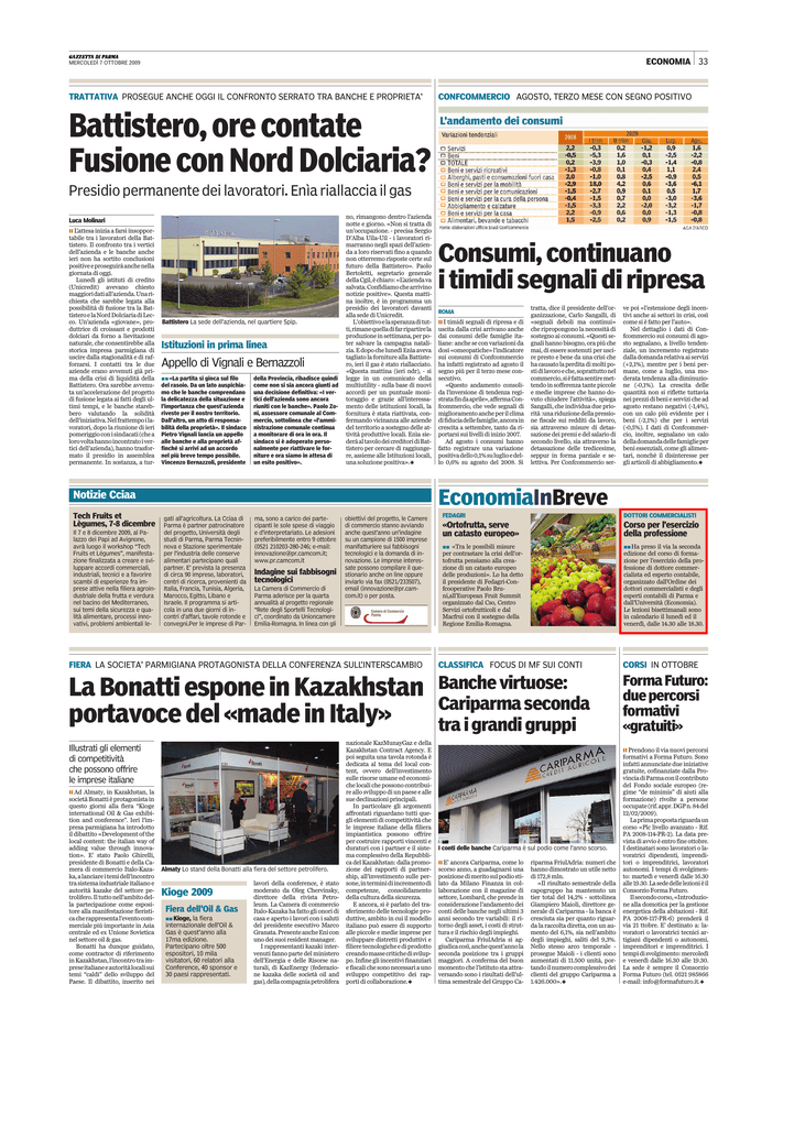 ECONOMIA 33 MERCOLEDÌ 7 OTTOBRE 2009 TRATTATIVA PROSEGUE ANCHE OGGI IL CONFRONTO SERRATO TRA BANCHE E PROPRIETA' CONFCOMMERCIO AGOSTO, TERZO MESE CON SEGNO POSITIVO Battistero, ore contate Fusione con Nord Dolciaria? Presidio permanente dei lavoratori. Enìa riallaccia il gas Luca Molinari II L'attesa inizia a farsi insopportabile tra i lavoratori della Battistero. Il confronto tra i vertici dell’azienda e le banche anche ieri non ha sortito conclusioni positive e proseguirà anche nella giornata di oggi. Lunedì gli istituti di credito (Unicredit) avevano chiesto maggiori dati all’azienda. Una richiesta che sarebbe legata alla possibilità di fusione tra la Battistero e la Nord Dolciaria di Lecco. Un’azienda «giovane», produttrice di croissant e prodotti dolciari da forno a lievitazione naturale, che consentirebbe alla storica impresa parmigiana di uscire dalla stagionalità e di rafforzarsi. I contatti tra le due aziende erano avvenuti già prima della crisi di liquidità della Battistero. Ora sarebbe avvenuta un’accelerazione del progetto di fusione legata ai fatti degli ultimi tempi, e le banche starebbero valutando la solidità dell’iniziativa. Nel frattempo i lavoratori, dopo la riunione di ieri pomeriggio con i sindacati (che a loro volta hanno incontrato i vertici dell’azienda), hanno trasformato il presidio in assemblea permanente. In sostanza, a tur- Battistero La sede dell'azienda, nel quartiere Spip. Istituzioni in prima linea Appello di Vignali e Bernazzoli «La partita si gioca sul filo del rasoio. Da un lato auspichiamo che le banche comprendano la delicatezza della situazione e l’importanza che quest’azienda riveste per il nostro territorio. Dall’altro, un atto di responsabilità della proprietà». Il sindaco Pietro Vignali lancia un appello alle banche e alla proprietà affinché si arrivi ad un accordo nel più breve tempo possibile. Vincenzo Bernazzoli, presidente della Provincia, ribadisce quindi come non si sia ancora giunti ad una decisione definitiva: «I vertici dell’azienda sono ancora riuniti con le banche». Paolo Zoni, assessore comunale al Commercio, sottolinea che «l'amministrazione comunale continua a monitorare di ora in ora. Il sindaco si è adoperato personalmente per riattivare le forniture e ora siamo in attesa di un esito positivo». no, rimangono dentro l’azienda notte e giorno. «Non si tratta di un’occupazione. - precisa Sergio D’Alba Uila-Uil - i lavoratori rimarranno negli spazi dell’azienda a loro riservati fino a quando non otterremo risposte certe sul futuro della Battistero». Paolo Bertoletti, segretario generale della Cgil, è chiaro: «L'azienda va salvata. Confidiamo che arrivino notizie positive». Questa mattina inoltre, è in programma un presidio dei lavoratori davanti alla sede di Unicredit. L’obiettivo e la speranza di tutti, rimane quella di far ripartire la produzione in settimana, per poter salvare la campagna natalizia. E dopo che lunedì Enìa aveva tagliato la forniture alla Battistero, ieri il gas è stato riallacciato. «Questa mattina (ieri ndr), - si legge in un comunicato della multiutility - sulla base di nuovi accordi per un puntuale monitoraggio e grazie all’interessamento delle istituzioni locali, la fornitura è stata riattivata, confermando vicinanza alle aziende del territorio a sostegno delle attività produttive locali. Enìa siederà al tavolo dei creditori di Battistero per cercare di raggiungere, assieme alle Istituzioni locali, una soluzione positiva». Il 7 e 8 dicembre 2009, al Palazzo dei Papi ad Avignone, avrà luogo il workshop “Tech Fruits et Légumes”, manifestazione finalizzata a creare e sviluppare accordi commerciali, industriali, tecnici e a favorire scambi di esperienze fra imprese attive nella filiera agroindustriale della frutta e verdura nel bacino del Mediterraneo, sui temi della sicurezza e qualità alimentare, processi innovativi, problemi ambientali le- ROMA II I timidi segnali di ripresa e di uscita dalla crisi arrivano anche dai consumi delle famiglie italiane: anche se con variazioni da dosi «omeopatiche» l'indicatore sui consumi di Confcommercio ha infatti registrato ad agosto il segno più per il terzo mese consecutivo. «Questo andamento consolida l’inversione di tendenza registrata fin da aprile», afferma Confcommercio, che vede segnali di miglioramento anche per il clima di fiducia delle famiglie, ancora in crescita a settembre, tanto da riportarsi sui livelli di inizio 2007. Ad agosto i consumi hanno fatto registrare una variazione positiva dello 0,1% su luglio e dello 0,6% su agosto del 2008. Si tratta, dice il presidente dell’organizzazione, Carlo Sangalli, di «segnali deboli ma continui» che ripropongono la necessità di sostegno ai consumi. «Questi segnali hanno bisogno, ora più che mai, di essere sostenuti per uscire presto e bene da una crisi che ha causato la perdita di molti posti di lavoro e che, soprattutto nel commercio, si è fatta sentire mettendo in sofferenza tante piccole e medie imprese che hanno dovuto chiudere l’attività», spiega Sangalli, che individua due priorità :una riduzione della pressione fiscale sui redditi da lavoro, sia attraverso misure di detassazione dei premi e del salario di secondo livello, sia attraverso la detassazione delle tredicesime, seppur in forma parziale e selettiva. Per Confcommercio ser- ve poi «l'estensione degli incentivi anche ai settori in crisi, così come si è fatto per l’auto». Nel dettaglio i dati di Confcommercio sui consumi di agosto segnalano, a livello tendenziale, un incremento registrato dalla domanda relativa ai servizi (+2,1%), mentre per i beni permane, come a luglio, una moderata tendenza alla diminuzione (-0,1%). La crescita delle quantità non si riflette tuttavia nei prezzi di beni e servizi che ad agosto restano negativi (-1,4%), con un calo più evidente per i beni (-2,1%) che per i servizi (-0,5%). I dati di Confcommercio, inoltre, segnalano un calo 
