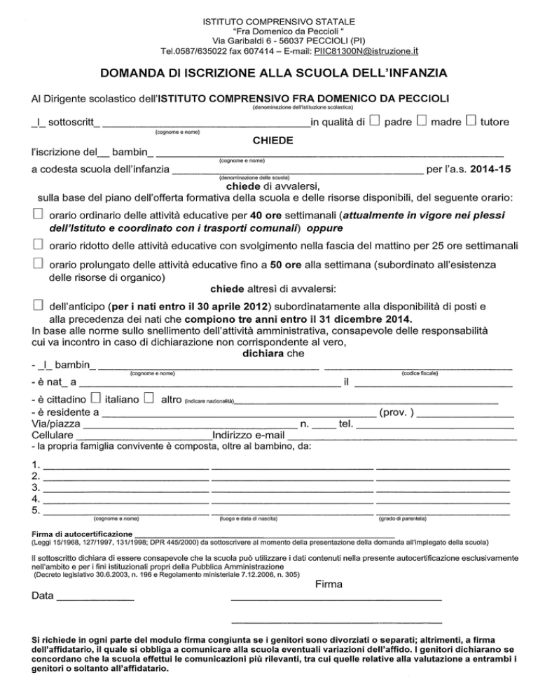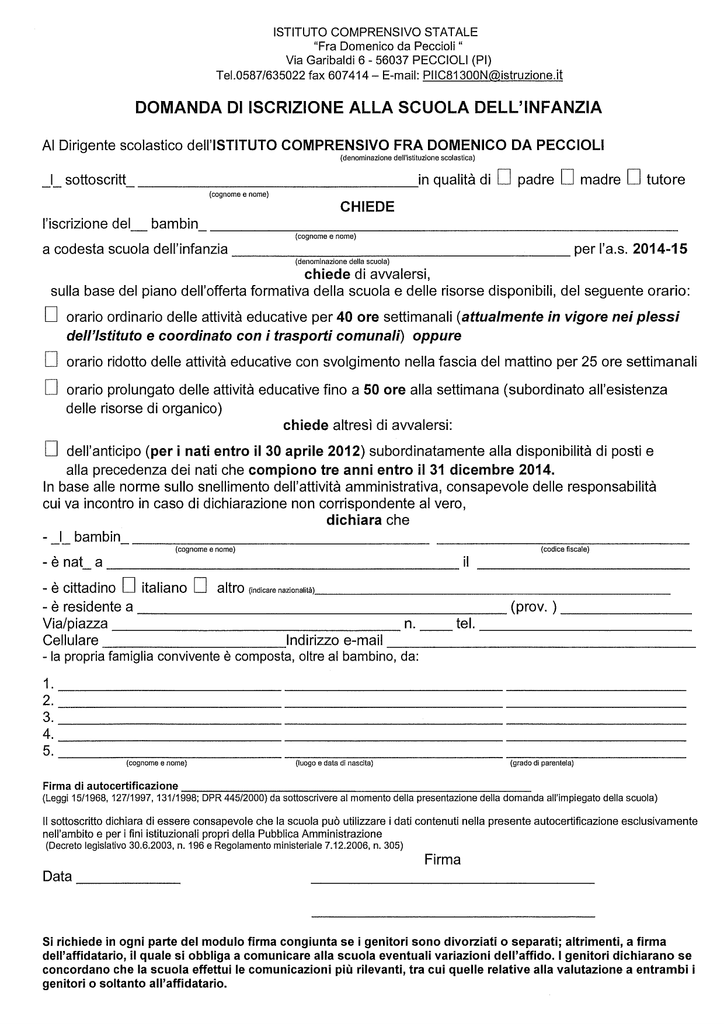 domanda di iscrizione alla scuola dell`infanzia