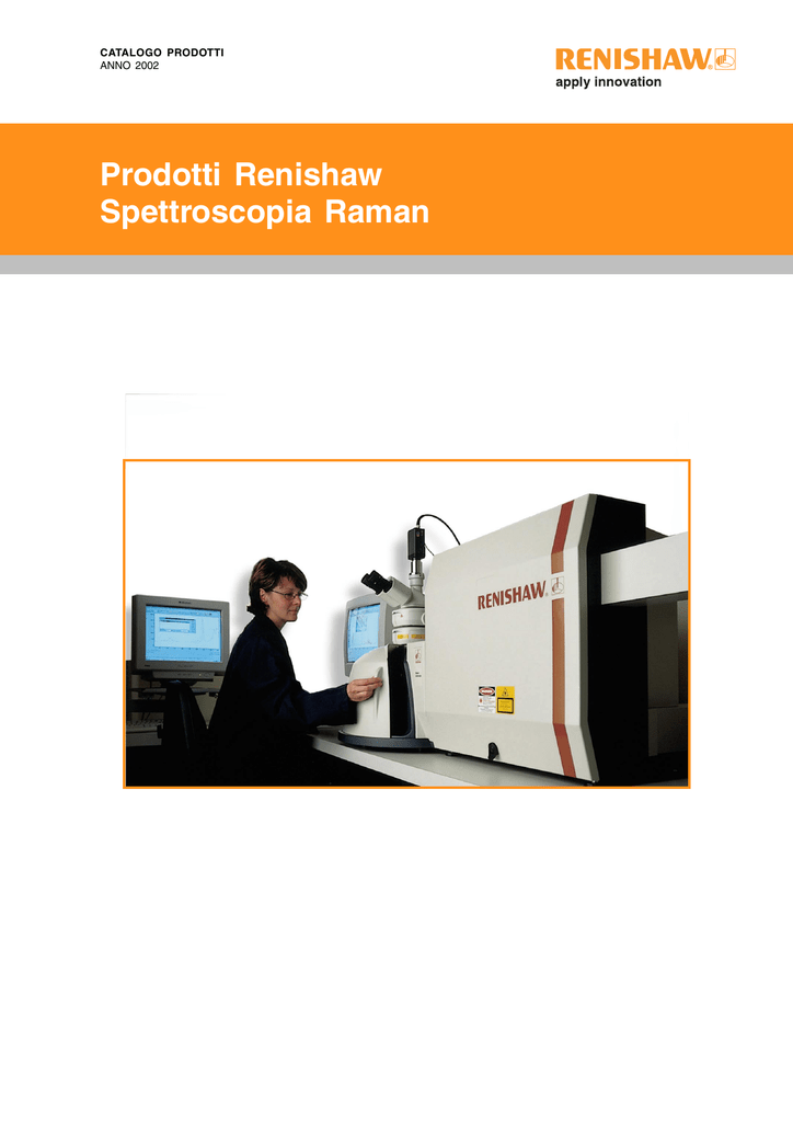 CATALOGO PRODOTTI ANNO 2002 Prodotti Renishaw Spettroscopia Raman PRODOTTI RENISHAW SPETTROSCOPIA RAMAN Spettroscopia Raman © 2002 Renishaw. Tutti i diritti riservati. 2 Renishaw ® è un marchio registrato della Renishaw plc. É vietato copiare, riprodurre o trasmettere alcuna parte del documento in qualsiasi forma ed in qualsiasi lingua, per qualsivoglia scopo e con qualsiasi mezzo, senza l’espresso consenso della Renishaw plc. La pubblicazione del materiale qui contenuto non esonera l’utente dai diritti di brevetto della Renishaw plc. Limite di responsabilità Il presente documento è stato preparato con la massima attenzione per garantire che sia esente da errori ed omissioni. La casa non garantisce comunque la precisione delle informazioni qui contenute ed in particolare respinge la garanzia implicita. Renishaw plc si riserva il diritto di apportare modifiche al documento ed alle apparecchiature trattate senza incorrere alcun obbligo di notifica. Marchi di fabbrica I nomi di marche e di prodotti quotati all’interno del presente documento si riferiscono a nomi commerciali, a marchi d’identificazione dei servizi, a marchi di fabbrica o a marchi registrati di proprietà dei rispettivi detentori. Art. Renishaw: CATALOGO RENISHAW SPETTROSCOPIA RAMAN Edizione: ANNO 2002 Spettroscopia Raman 3 SOMMARIO Spettroscopia Raman ........................................................ 4 Sistema 1000 .................................................................... 5 Sistema 2000 .................................................................... 5 Sistema 3000 .................................................................... 5 Accessori ...................................................................... 6-7 System 100 process analyzer ......................................... 8-9 Spettroscopia Raman PRODOTTI RENISHAW SPETTROSCOPIA RAMAN 4 Spettroscopia Raman L’effetto Raman è una conseguenza dell’interazione della luce con la materia. La radiazione incidente, proveniente da una sorgente laser, provoca la vibrazione dei legami fra gli atomi. L’analisi della luce riemessa, nella forma di uno spettro Raman, fornisce informazioni importantissime sulla struttura molecolare e sullo stato fisico del campione. Come mezzo analitico la spettroscopia Raman presenta notevoli vantaggi rispetto alla spettroscopia infrarossa e ad altre tecniche analitiche: Caratteristiche del sistema RAMAN: - campionamento non distruttivo e non intrusivo - misure in aria - elevata risoluzione spaziale (1mm o meno) - misure in soluzione - misure ad alte e basse temperature - cellette portacampione in vetro Fino ad oggi la spettroscopia Raman è stata poco utilizzata al di fuori dei centri di ricerca specializzati. Grazie al lavoro pionieristico della Renishaw la situazione è cambiata ed è nata una nuova generazione di strumenti Raman. La Renishaw è stata la prima compagnia ad offrire una nuova generazione di spettrometri Raman, che si contraddistinguono per il progetto innovativo delle ottiche e per gli ultimi ritrovati in materia di filtri e sistemi di rivelazione. I nostri sistemi Raman (Renishaw Raman Imaging Microscopes) sono i primi strumenti compatti, facili da usare e dalla efficienza elevata. Questi sistemi hanno portato ad una nuova ondata di interesse nei confronti della spettroscopia Raman, che vengono ora utilizzati sia nelle applicazioni tradizionali sia in settori ancora non scandagliati. APPLICAZIONI - Semiconduttori identificazione e determinazione dei contaminanti, misure di tensioni interne, struttura e composizione di dispositivi elettronici, deterioramento delle superfici - Rivestimenti protettivi controllo di qualità di film DLC (pseudo-diamante), vernici e adesivi - Polimeri identificazione di polimeri e di mescole, determinazione della cristallinità - Farmaceutica studi di polimorfismo, eccipienti e principi attivi - Gemmologia analisi di gemme e di minerali, identificazione di inclusioni e riempitivi - Chimica composizione di catalizzatori, materiali ceramici, ossidi e molte altre applicazioni - Prodotti di corrosione analisi degli ossidi, analisi dei film protettivi - Medicina legale determinazione ed identificazione di esplosivi e narcotici, identificazione di fibre - Arte e Restauro Caratterizzazione di pigmenti, lacche, cere, prodotti dell'invecchiamento, autenticazione Sia i modelli per la ricerca, sia quelli industriali sono disponibili in diverse configurazioni flessibili. I modelli base possono essere implementati in ogni momento a configurazioni superiori, per studi Raman nel UV/ visibile e nel vicino-IR. RM series Raman systems RM 1000B:spettroscopia Raman e PL risposta alle lunghezze d’onda 400-1000 nm risoluzione spettrale* 3 cm-1 intervallo spettrale* <200-4000 cm -1 (**) (Raman shift) astigmatismo nessuno efficienza ottica* >30% tensione d’alimentazione 110/220 V dimensioni dello spettrometro ca. 650mm x 400mm x 650mm peso 55Kg sistema di rivelazione microscopio fenditura fissa* CCD standard (visibile) Leica DLML 50 o 70 µm *Dipendenti dalla frequenza di eccitazione RM 1000: spettroscopia confocale e PL Sistema RM 1000B con aggiunta: risoluzione spettrale* 1cm -1 intervallo spettrale* <100-4000cm-1 (opzionale: limite inf. fino a 50cm-1, limite sup.fino a 9000 cm-1) risoluzione spaziale laterale 1µm (X100 ingrandimenti) profondità di campo ~2µm (X100 ingrandimenti) reticoli di diffrazione 600,1200, 1800, 2400 3600 linee/mm istema di rivelazione CCD: vedi "Sistemi di Rivelazione" fenditura regolabile RM 2000: spettroscopia confocale, PL e 2-D globalRaman Imaging Sistema RM1000 con aggiunta di: filtri a selezione di banda intervallo spettrale ruota dei filtri e set di filtri* 10-20 cm-1 100-4000 cm-1 RM 3000: spettroscopia confocale, PL, 2-D globalRaman Imaging e alte risoluzioni spettrali Sistema RM 2000 risoluzione spettrale con aggiunta di un filtro interferometrico passabanda di Fabry-Perot 0,2 cm-1 IMPLEMENT AZIONI ALLA SERIE RM: IMPLEMENTAZIONI Spettr