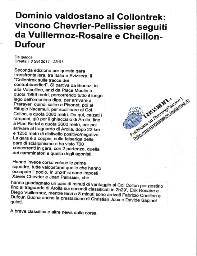 Dominio valdostano al Collontrek:
