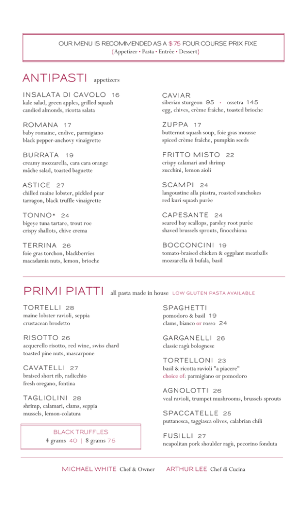 OUR MENU IS RECOMMENDED AS A $75 FOUR COURSE PRIX FIXE