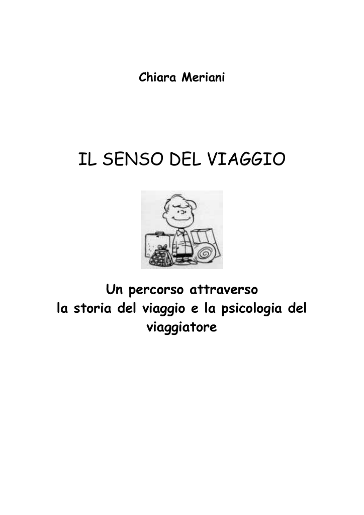 Chiara Meriani IL SENSO DEL VIAGGIO Un percorso attraverso la storia del viaggio e la psicologia del viaggiatore La vita è un libro. Chi non viaggia ne legge una sola pagina. Sant'Agostino Indice Introduzione Perché l'uomo viaggia? Pag.6 Prima parte Dalle origini a oggi: come cambiano il concetto e il senso del viaggio Il viaggio nell'antichità Cap.1 Le società nomadi Pag.9 1.1 La struttura socio-politica delle società nomadi Pag.10 1.2 Società nomadi e società stanziali Pag.11 1.3 La percezione del tempo libero delle popolazioni nomadiPag.12 1.4 Spiritualità e religiosità in viaggio Pag.12 Cap.2 Il viaggio nella mitologia antica 2.1 L'eterno ritorno: l'epopea di Gilgamesh e il mito di Etana 2.2 L'Odissea e il viaggio verso la scoperta Cap.3 "La via" nel pensiero greco 3.1 Eraclito e il movimento 3.2 Parmenide e la strada della verità 3.3 Socrate: il viaggio è psiché 3.4 Il mito della caverna di Platone Pag.14 Pag.15 Pag.19 Pag.20 Pag.21 Pag.21 Pag.22 Pag.22 Viaggiare nella fede Cap.4 Il significato del viaggio nelle religioni 4.1 Stesse radici per tre grandi religioni "nomadi" Pag.24 Pag.26 4.2 Viaggiare nell'ebraismo Pag.27 4.2.1 Il concetto del viaggio nell'Antico Testamento Pag.27 4.2.2 Abramo conduce il suo popolo "di accampamento in accampamento" Pag.28 4.2.3 "Darò a te e alla tua discendenza tutto il paese di Canaan" Pag.30 4.2.4 L'esodo di Israele verso la Terra Promessa Pag.31 4.2.5 Dio, pastore di un popolo in eterna migrazione Pag.32 4.3 4.3.1 4.3.2 4.3.3 Viaggiare nel Cristianesimo Pag.34 "Io sono il buon pastore": origine ebraica del Cristianesimo Pag.35 "E andò per tutta la Galilea…" Pag.36 E Gesù disse: "Io sono la via" Pag.37 4.4 4.4.1 4.4.2 4.4.3 4.4.4 4.4.5 Viaggiare nell'Islam Abramo, padre dei musulmani Arabia, paese di poveri nomadi e ricchi carovanieri "Dio t'ha trovato errante e t'ha dato la via" La conquista della Mecca e la stesura del Corano La gihad, via per la salvezza 4.5 4.5.1 4.5.2 4.5.3 4.5.4 Il cammino di fede: il pellegrinaggio Pellegrini e monaci orientali Il hadj e il pellegrinaggio islamico Il sibbab, viaggio nella Terra Santa Un percorso storico attraverso il pellegrinaggio cristiano: dal cammino della fede al "cammino del senso" Pag.40 Pag.40 Pag.41 Pag.41 Pag.43 Pag.44 Pag.46 Pag.48 Pag.50 Pag.51 Pag.53 Dal Medioevo al Novecento Cap.5 Cap.6 Cap.7 Cap.8 Il viaggio nel Medioevo 5.1 I cavalieri erranti 5.2 Il "pellegrinaggio in armi": le crociate 5.3 Gli studiosi itineranti e la nascita delle università I grandi viaggi dei mercanti 6.1 La via della seta e delle spezie 6.2 I viaggi in Cina di Marco Polo 6.3 Viaggi via mare per raggiungere le Indie 6.4 "Buscar el Levante por el Poniente" 6.5 La Terra d'Amerigo 6.6 La prima circumnavigazione del globo Il Nuovo Mondo 7.1 I conquistadores e gli imperi coloniali 7.2 Gli esploratori e la nuova letteratura di viaggio 7.3 La ridefinizione dell'identità europea 7.4 La nascita della scienza moderna e del viaggiatore scienziato 7.5 Il Viaggio alle regioni equinoziali del Nuovo Continente di Alexander von Humboldt 7.6 The Voyage of the Beagle di Charles Darwin 7.7 La caccia all'oro e il sogno di Eldorado Il Grand Tour 8.1 Il Grand Tour degli eleganti giramondo 8.2 Il precettore viaggiante e l'Interrogatoria 8.3 Il senso del sublime 8.4 Il Grand Tour e i suoi aspetti sociali La nascita del viaggio moderno Pag.58 Pag.58 Pag.60 Pag.62 Pag.64 Pag.64 Pag.66 Pag.67 Pag.68 Pag.72 Pag.73 Pag.68 Pag.69 Pag.70 Pag.70 Pag.75 Pag.75 Pag.76 Pag.78 Pag.80 Pag.80 Pag.81 Pag.83 Pag.85 Cap.9 Il sogno a stelle e strisce 9.1 America, terra senza radici 9.2 Colonizzatori ed emigranti europei 9.3 La frontiera e il West 9.4 I viaggi per sopravvivere durante la depressione 9.5 La beat generation "on the road" 9.6 Blowin' in the Wind e il mito delle highways 9.7 La nascita dei bikers: Easy Rider Pag.87 Pag.88 Pag.90 Pag.87 Pag.87 Pag.92 Pag.95 Pag.97 Cap.10 Il viaggio diventa turismo 10.1 Nasce il turismo, lusso per l'élite privilegiata 10.2 Stazioni termali, spiagge-salotto e le prime piste da sci 10.3 Le ferie retribuite e la nascita del turismo di massa 10.4 Il boom economico del secondo dopoguerra 10.5 La superficialità di uno sguardo che scivola Pag.101 Pag.102 Pag.104 Pag.105 Pag.107 Pag.109 Cap.11 Turismo sostenibile e l'etica del viaggiatore 11.1 Turismo responsabile e sostenibile 11.2 Carte e decaloghi per turisti 11.3 Dallo spazio consumato a quello vissuto 11.4 "Nuocere alla terra è accumulare disprezzo per il suo Creatore" 11.5 Il ciclo di vita di una località turistica 11.6 Religione e sostenibilità 11.7 Il Marchio del Turismo Responsabile Pag.113 Pag.113 Pag.115 Pag.117 Conclusione della prima parte: Il turista ha soppiantato il viaggiatore? Pag.117 Pag.118 Pag.119 Pag.120 Pag.121 Seconda Parte La psicologia del viaggiatore Cap.12 Chi è il viaggiatore? 12.1 L'irrequietezza 12.2 La libertà 12.3 La solitudine 12.4 Less is more 12.5 Il sapere nei piedi Pag.124 Pag.125 Pag.127 Pag.128 Pag.131 Pag.132 Cap.13 Le fasi del viaggio 13.1 I preparativi Pag.135 Pag.136 13.2 La partenza 13.2.1 Se non è una scelta 13.2.2 Sofferenza e gioia della partenza Pag.137 Pag.137 Pag.138 13.3 13.3.1 13.3.2 13.3.3 Il transito La prospettiva del viaggiatore Flow state, il piacere dell'andare Camminare, il cuore antico del viaggio Pag.141 Pag.141 Pag.141 Pag.144 13.4 L'arrivo Pag.145 Cap.14 La percezione spazio-temporale del viaggiatore Pag.149 Cap.15 Le emozioni, compagne di viaggio 15.1 L'intelligenza emotiva 15.2 La bellezza del paesaggio 15.3 Universalità delle emozioni 15.4 La sindrome di Stendhal 15.5 Le geografie del tempo Pag.153 Pag.153 Pag.155 Pag.158 Pag.158 Pag.159 Cap.16 L'incontro con l'altro attraverso strade di carta 16.1 Alla scoperta di culture diverse 16.2 La letteratura di viaggio, specchio dell'anima del viaggiatore Pag.160 Pag.160 Cap.17 Pag.163 La creazione dell'identità Pag.166 Conclusioni: Alla ricerca del senso del viaggio Bibliografia Immagini di viaggio, fonti iconografiche Pag.169 Pag.171 Pag.
