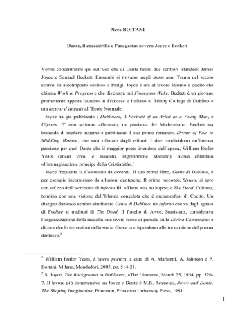 Piero BOITANI Dante, il coccodrillo e l`aragosta: ovvero Joyce e