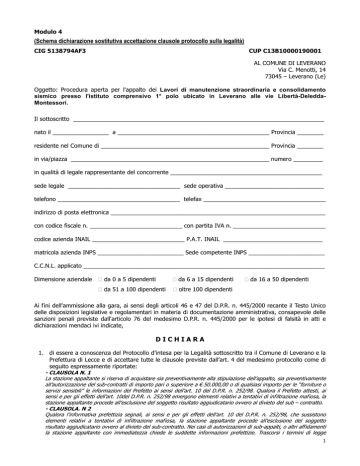 (Schema dichiarazione sostitutiva accettazione clausole protocollo