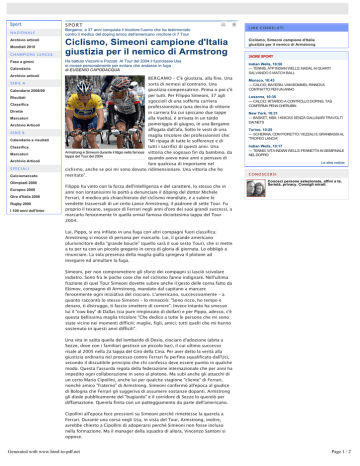 SPORT NAZIONALE Archivio articoli Mondiali 2010 CHAMPIONS LEAGUE Fase a gironi Calendario Archivio articoli SERIE A Calendario 2008/09 Risultati Classifica Dirette Marcatori Archivio Articoli SERIE B Calendario e risultati Classifica Marcatori Archivio Articoli SPECIALI Calciomercato Olimpiadi 2008 Europeo 2008 Giro d'Italia 2008 Rugby 2008 I 100 anni dell'Inter Bergamo, a 37 anni conquista il tricolore l'uomo che ha testimoniato contro il medico del doping amico dell'americano vincitore di 7 Tour Ciclismo, Simeoni campione d'Italia giustizia per il nemico di Armstrong Ha battuto Visconti e Pozzati. Al Tour del 2004 il fuoriclasse Usa si mosse personalmente per evitare che andasse in fuga di EUGENIO CAPODACQUA BERGAMO - C'è giustizia, alla fine. Una sorta di nemesi al contrario. Una giustizia compensatrice. Prima o poi c'è per tutti. Per Filippo Simeoni, 37 agli sgoccioli di una sofferta carriera professionistica (una decina di vittorie in carriera fra cui spiccano due tappe alla Vuelta), è arrivata in un tardo pomeriggio di giugno, in una Bergamo affogata dall'afa. Sotto le vesti di una maglia tricolore dei professionisti che: "Mi ripaga di tutte le sofferenze e di tutti i sacrifici di questi anni. Una Armstrong e Simeoni durante il litigio nella famosa vittoria che sognavo fin da bambino, da tappa del Tour del 2004 quando avevo nove anni e pensavo di fare qualcosa di importante nel ciclismo, anche se poi mi sono dovuto ridimensionare. Una vittoria che ho meritato". Filippo ha vinto con la forza dell'intelligenza e del carattere, lo stesso che in anni non lontanissimi lo portò a denunciare il doping del dottor Michele Ferrari, il medico più chiacchierato del ciclismo mondiale, e a subire le vendette trasversali di un certo Lance Armstrong, il padrone di sette Tour. Fu proprio il texano, seguace di Ferrari negli anni d'oro dei suoi grandi successi, a marcarlo ferocemente in quella ormai famosa diciottesima tappa del Tour 2004. LINK CORRELATI Ciclismo, Simeoni campione d'Italia giustizia per il nemico di Armstrong 24ORE SPORT Indian Wells, 10:50 — TENNIS, ATP INDIAN WELLS: NADAL AI QUARTI SALVANDO 5 MATCH BALL Monaco, 10:43 — CALCIO, BAYERN: VAN BOMMEL RINNOVA CONTRATTO PER UN ANNO Losanna, 10:35 — CALCIO: RITARDO A CONTROLLO DOPING, TAS CONFERMA PENA CHERUBIN New York, 10:31 — BASKET, NBA: I KNICKS SENZA GALLINARI TRAVOLTI DAI NETS Torino, 10:25 — SCHERMA, CDM FIORETTO: VEZZALI E GRANBASSI AL 'TROFEO LANCIA' Indian Wells, 10:17 — TENNIS, WTA INDIAN WELLS: PENNETTA IN SEMIFINALE NEL DOPPIO Le altre notizie CONOSCERSI Conosci persone selezionate, affini a te. Serietà, privacy. Consigli mirati. Lui, Pippo, si era infilato in una fuga con altri compagni fuori classifica; Armstrong si mosse di persona per marcarlo. Lui, il grande americano plurivincitore della "grande boucle" (quello sarà il suo sesto Tour), che si mette a tu per tu con un piccolo gregario in cerca di gloria di giornata. Lo obbligò a rinunciare. La sola presenza della maglia gialla spingeva il plotone ad inseguire ed annullare la fuga. Simeoni, per non compromettere gli sforzi dei compagni si lasciò scivolare indietro. Sono fra le poche cose che nel ciclismo fanno indignare. Nell'ultima frazione di quel Tour Simeoni dovette subire anche il gesto delle corna fatto da Ekimov, compagno di Armstrong, mandato dal capitano a marcare ferocemente ogni iniziativa del ciociaro. L'americano, successivamente - a quanto raccontò lo stesso Simeoni - lo minacciò: "Sono ricco, ho tempo e denaro, ti distruggo, ti faccio smettere di correre". Invece intanto ha smesso lui il "cow boy" di Dallas (sia pure rimpinzato di dollari) e per Pippo, adesso, c'è questa bellissima maglia tricolore "Che dedico a tutte le persone che mi sono state vicino nei momenti difficili; maglie, figli, amici; tutti quelli che mi hanno sostenuto in questi anni difficili". Una vita in salita quella del lombardo di Desio, ciociaro d'adozione (abita a Sezze, dove con i familiari gestisce un piccolo bar), il cui ultimo successo risale al 2005 nella 2a tappa del Giro della Cina. Per aver detto la verità alla giustizia ordinaria nel processo contro Ferrari fu perfino squalificato dall'Uci, secondo il discutibile principio che chi confessa deve essere punito in qualche modo. Questa l'assurda regola della federazione internazionale che per anni ha impedito ogni collaborazione in seno al plotone. Ma subì anche gli attacchi di un certo Mario Cipollini, anche lui per qualche stagione "cliente" di Ferrari, nonché amico "fraterno" di Armstrong. Simeoni confermò all'epoca al giudice di Bologna che Ferrari gli suggeriva di assumere sostanze dopanti. Armstrong gli diede pubblicamente del "bugiardo" e il corridore di Sezze lo querelò per diffamazione. Querela finita con un patteggiamento da parte dell'americano. Cipollini all'epoca fece pressioni su Simeoni perché rimettesse la querela a Ferrari. Durante una corsa negli Usa, in vista del Tour, Armstrong, inoltre, avrebbe chiesto a Cipollini di adoperarsi perché Simeoni non fosse incluso nella formazione. Ma il manager della squadra di allora, Vincenzo Santoni si oppose. Generated with www.html-to-pdf.net Page 1 / 2 Ora, francamente, vederlo sul podio tricolore sapendo che quel medico è stato radiato dal ciclismo e dallo sport nazionale (almeno ufficialmente), non può che allargare il cuore di chi per anni ha combattuto. Lui, Pippo, c'è, è lì, sul gradino più alto e a fargli da corona Giovanni Visconti e Pippo Pozzato, cioè il campione tricolore uscente e uno dei più osannati atleti del pedale nostrano. Uno di quelli - ricordano le cronache - che nel battibecco con Armstrong si schierò senza esitazione a favore dell'americano. Doppia soddisfazione per l'atleta di Sezze, dunque. Ha vinto l'esperienza. Pippo, una volta che l'ultimo passaggio in cima a Bergamo Alta aveva scremato il gruppetto dei migliori (rinfoltitosi fino alla trentina di unità nel finale con il rientro di Bettini e altri) ha capit