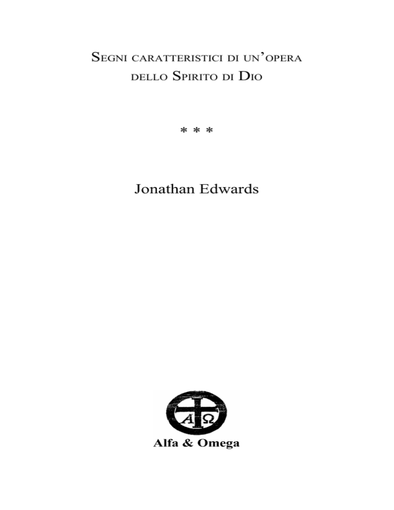 SEGNI CARATTERISTICI DI UN’OPERA DELLO SPIRITO DI DIO *** Jonathan Edwards INTRODUZIONE ALL’EDIZIONE ITALIANA Nel 1976, Martyn Lloyd Jones esortò un folto gruppo di ministri della Parola e di cristiani con queste parole: «Jonathan Edwards è il personaggio di maggior rilievo di fronte alla condizione odierna del cristianesimo... Il mio consiglio è questo: leggete Jonathan Edwards! Smettetela di andare di raduno in raduno e di riunione in riunione! Smettetela di accontentarvi delle varie forme d’intrattenimento così popolari oggigiorno negli ambienti evangelici. Rimanete a casa vostra... dedicatevi a qualcosa di solido, di profondo e di realmente spirituale... leggete gli scritti di quest’uomo»1. Se è stato necessario indirizzare tale esortazione a cristiani di lingua inglese che da secoli hanno il privilegio di usufruire del più ricco e completo patrimonio letterario che espone e difende la verità della Parola di Dio, quanto più diventa urgente rivolgere il medesimo invito a quei credenti italiani che, a causa dello strapotere del cattolicesimo romano non hanno potuto, fino ad oggi, ricevere quella luce che nel passato Cristo ha elargito alla chiesa per mezzo dei suoi servitori in altre nazioni! Jonathan Edwards nacque a Windsor, nello stato del Connecticut il 5 ottobre del 17032. Suo padre, Timothy Edwards, era figlio di un commerciante moderatamente benestante e compì i suoi studi al College di Harvard, l’istituto fondato dai “padri pellegrini” nel 1636 in Massachussets. Nel 1695 Ti1 D. M. Lloyd Jones, Jonathan Edwards and the Crucial Importance of Revival, Westminster Conference, London 1976, in The Puritans, Banner of Truth, Edinburgh 1987, pp. 348-371. 2 Le notizie riguardanti la vita di Jonathan Edwards sono state tratte da: I. H. Murray, Jonathan Edwards: a New Biography, Banner of Truth, Edinburgh 1987; S. E. Dwight, Memoirs of Jonathan Edwards, pubblicata in The Works of Jonathan Edwards, Banner of Truth, Edinburgh 1974, volume 1, pp. XI-CCXXXIV. IX mothy divenne pastore della chiesa di East Windsor, dove trascorse il resto della sua vita. La madre di Jonathan Edwards, Eshter Stoddard, era figlia del famoso Salomon Stoddard, pastore a Northampton dal 1669 al 1726. Jonathan Edwards risentì molto dell’influenza di suo padre che lo educò con rigore, insegnandogli, tra le altre cose, a tenere in gran considerazione il ministero pastorale. Durante i primi anni della sua vita, le chiese del New England attraversarono un periodo di declino spirituale. Tuttavia, in quello stesso periodo, egli fu testimone di alcuni genuini risvegli operati dallo Spirito Santo nella congregazione di East Windsor. Edwards stesso racconta: «Da quando mio padre esercita qui il suo ministero... ci sono state quattro o cinque effusioni di Spirito Santo che hanno prodotto un risveglio generalizzato tra la popolazione»1. Nel settembre del 1716, quando aveva quasi 13 anni, Jonathan cominciò a frequentare la “Collegiate School” del Connecticut. Durante gli anni trascorsi a scuola, ciò che aveva sperimentato durante i periodi di risveglio andò dimenticato. Le sue abitudini religiose non erano più in grado di trattenere la forza del peccato presente in lui. In particolare, divenendo gradatamente consapevole delle sue notevoli doti naturali, Edwards cominciò a manifestare orgoglio e amor proprio. L’alta opinione che aveva di se stesso faceva crescere in lui l’ambizione di far conoscere i suoi talenti nel mondo. Questa fu la condizione spirituale di Jonathan Edwards fino al 1721. Fino a quando cioè, fu convinto dallo Spirito Santo della necessità di essere liberato dal potere del peccato e dal giudizio a venire. Ma lasciamo che sia lui stesso a dirci ciò che accadde: «Al Re eterno, immortale, invisibile, all’unico Dio, siano onore e gloria nei secoli dei secoli. Amen (I 1 J. Edwards, A Faithful Narrative of the Surprising Work of God in the Conversion of many Hundred of Souls in Northampton (Una fedele narrazione della sorprendente opera di Dio nella conversione di molte centinaia di anime a Northampton) The Works of Jonathan Edwards, Banner of Truth, Edinburgh 1974, volume 1, p. 349. X Timoteo 1:17). Mentre leggevo queste parole, l’intero mio essere fu pervaso dalla consapevolezza della gloria di Dio. Fu per me un’esperienza completamente nuova. Mai le parole della Bibbia avevano avuto un tal effetto... Da quel momento cominciai a considerare Gesù Cristo in maniera diversa; la sua opera di redenzione e la gloriosa salvezza che si ottiene per mezzo di lui apparivano realtà meravigliose ai miei occhi. Spesso il mio cuore si soffermava a contemplare queste verità divine e la mia mente era costantemente dedicata alla lettura e alla meditazione. L’eccellenza della persona di Cristo e la salvezza per sola grazia diventarono il mio diletto... in ogni cosa vedevo la manifestazione della gloria di Dio... la sua perfezione, la sua sapienza, la sua purezza ed il suo amore apparivano nel sole, nella luna, nelle stelle, nelle nuvole, nel cielo, nell’erba, nei fiori, negli alberi, nell’acqua e in ogni cosa...». Fino a questo momento gli scritti di Edwards riguardavano argomenti quali “Gli insetti”, “L’arcobaleno”, “La luce”, “Gli atomi”, ma d’ora in poi lo studio della Bibbia e della teologia saranno per lui l’interesse principale verso il quale concentrerà tutte le sue energie. Dopo aver terminato gli studi, Jonathan Edwards colse l’occasione di trascorrere un periodo di attività pastorale presso una chiesa di New York, dove rimase per circa nove mesi. Qui il Signore lo incoraggiò a ricercare la santificazione con intensità ed ardore. Egli stesso racconta: «Il mio desiderio di avere comunione con Dio e di vivere santamente aumentò considerevolmente. Bramavo ardentemente essere un vero cristiano, conforme alla benedetta immagine di Gesù Cristo e ubbidiente a ogni comandamento del Vangelo». Dopo i nove mesi a New York, Edwards si dedicò