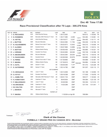 Doc 45 Race Provisional Classification after 70 Laps