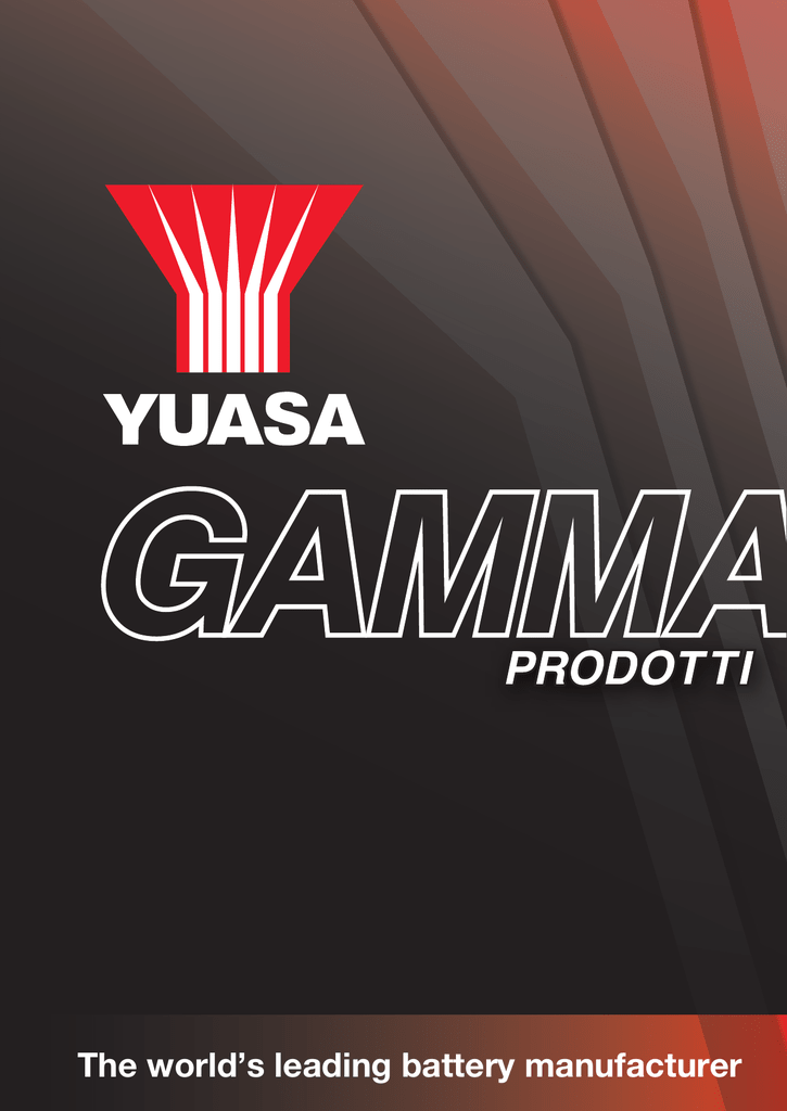 The world’s leading battery manufacturer Dal più profondo mare allo spazio Il Gruppo GS Yuasa è composto da 65 società sussidiarie e 33 filiali presenti in tutto il mondo. Rispondendo alle esigenze sempre più sofisticate di oggi, la nostra vasta gamma di batterie agli ioni di litio di nuova generazione prevede non solo l’utilizzo sui veicoli, ma Sin dalla sua fondazione nel 1895, il Gruppo GS anche in una vasta gamma di settori, dal marittimo al Yuasa ha sempre contribuito allo sviluppo economico settore aerospaziale, per soddisfare le esigenze sempre e al miglioramento degli standard di vita attraverso lo più evolute. sviluppo e la produzione di batterie, sistemi di alimentazione e apparecchi di illuminazione. Nel corso della sua lunga storia, il Gruppo GS Yuasa ha Ricopriamo una rilevante posizione nel mercato come lavorato per creare una tecnologia innovativa. Questo uno dei principali produttori al mondo di batterie auto, impegno costituisce la base dei nostri continui sforzi per moto e industriali. Come fornitore di sistemi di esplorare nuove possibilità nel settore dell’energia alimentazione ad alte prestazioni, contribuiamo a elettrica con una visione aziendale espressa nelle parole garantire l’affidabilità di molte infrastrutture pubbliche. 2 Yuasa Gamma Prodotti 2014 “Innovazione e Crescita.” Yuasa in Europa 1 Yuasa Battery Europe Limited Ebbw Vale 2 Yuasa Battery Sales (UK) Ltd Swindon 1 Düsseldorf 4 3 2 3 Yuasa Battery (Europe) GMBH Yuasa Battery France SA Lyon 5 Yuasa Italy SRL Milan 4 6 Yuasa Iberia Madrid 5 Yuasa Battery (UK) Ltd Factory Ebbw Vale 6 GS Yuasa è fornitrice in primo impianto dei principali produttori di veicoli al mondo Auto e Veicoli Commerciali Moto e Powersports Yuasa Gamma Prodotti 2014 3 Lunghezza Larghezza Altezza Peso medio con acido (Kg) Tempo di carica raccomandato Maniglie Sfiato laterale Indicatore dello stato di carica Caratteristiche semi-trazione Attacchi alla base Terminali Polarità Capacità di spunto (Amps) EN1 Capacità a 20 h (Ah) Tensione (V) Tipo di contenitore Codice YUASA Nuova Generazione di Batterie Auto Veicoli Micro Ibridi, Ibridi ed Elettrici 207 242 278 317 353 393 175 175 175 175 175 175 190 190 190 190 190 190 15.9 16.7 19.5 21.9 27 29 3 4 4 5 5 6 • • • • • • • • • • • • • • • • • • Dimensioni (mm) YBX9000 BATTERIE AGM START STOP PLUS YBX9012 YBX9027 YBX9096 YBX9115 YBX9019 YBX9020 L1 DIN AGM L2 DIN AGM L3 DIN AGM L4 DIN AGM L5 DIN AGM L6 DIN AGM 12V 12V 12V 12V 12V 12V 50 60 70 80 95 105 520 680 760 800 850 950 0 0 0 0 0 0 T1 T1 T1 T1 T1 T1 B3 B3 B3 B3 B3 B3 Caratteristiche • Circa 360.000 avviamenti • Veicoli Start/Stop con elevate specifiche • Prodotta con tecnologia AGM (acido assorbito nei separatori di tipo Glass Mat senza acido libero) • Doppio coperchio a prova di inclinazione • VRLA (batteria ermetica dotata di valvola) • Sistema arresto fiamma integrato • Qualità OE, con prestazioni e specifiche rispondenti alle normative dei costruttori di veicoli Prestazioni Comparate con le batterie avviamento convenzionali • +150% incremento dell’accettazione dinamica della carica (DCA) • +200% aumento della durata ciclica YBX7000 BATTERIE EFB START STOP YBX7054 YBX7055 YBX7053 YBX7027 YBX7005 YBX7014 YBX7100 YBX7096 YBX7030 YBX7031 YBX7110 YBX7115 YBX7335 B20 JIS EFB (M42) B20 JIS EFB (M42R) B24 JIS EFB (N55) L2 DIN EFB D23 JIS EFB (Q55/Q85) D23 JIS EFB (Q55R/Q85R) LB3 DIN EFB L3 DIN EFB D26 JIS EFB (S85/S95) D26 JIS EFB (S85R/S95R) LB4 DIN EFB L4 DIN EFB D31 JIS EFB (T110) 12V 12V 12V 12V 12V 12V 12V 12V 12V 12V 12V 12V 12V 40 40 45 60 64 64 65 70 72 72 75 80 80 340 340 370 560 620 620 650 650 760 760 730 730 780 0 1 0 0 0 1 0 0 0 1 0 0 0 T1/T3 T1/T3 T1/T3 T1 T1 T1 T1 T1 T1 T1 T1 T1 T1 Caratteristiche N N N B3 N N B3 B3 N N B3 B3 N 197 197 238 242 232 232 278 278 260 260 317 317 305 128 128 128 175 173 173 175 175 173 173 175 175 173 • Circa 270.000 avviamenti • Veicoli Start/Stop con ridotte specifiche • Doppio coperchio, no fuoriuscite di elettrolita anche in posizioni di inclinazione estrema - Riduce la perdita di acqua fino al 30% - VDA test, risultati migliori rispetto a quelli richiesti* • Accettazione di alti livelli di carica, dotazione di separatori a busta e tecnologia anti-solfatazione • Additivi al Carbonio/Litio sulla piastra 227 227 227 190 225 225 175 190 225 225 175 190 225 11.5 11.5 13 16.6 17.5 17.5 17.4 19.3 19.5 19.5 20.1 20.8 22.5 2 2 3 4 4 4 4 4 4 4 4 5 4 • • • • • • • • • • • • • • • • Sistema arresto fiamma integrato • Qualità OE, con prestazioni e specifiche rispondenti alle normative dei costruttori di veicoli Prestazioni Comparate con le batterie avviamento convenzionali • +170% incremento dell’accettazione dinamica della carica (DCA) • +100% aumento della durata ciclica *VDA: Associazione tedesca dell’industria automobilistica 4 Yuasa Gamma Prodotti 2014 Peso medio con acido (Kg) Tempo di carica raccomandato Maniglie Sfiato laterale Indicatore dello stato di carica 0.6 2.7 1.7 1.6 3 4.6 9.5 10.5 18 10.7 10.5 10.5 10.5 12.7 0.1 1 0.4 0.4 0.9 1.4 2 2 4 2 2 2 2 3 • • • • • • • Caratteristiche semi-trazione Altezza 54.5 97.5 92 86 106 146 225 202 202 187 227 227 227 227 Dimensioni (mm) Lunghezza Attacchi alla base Terminali Polarità Capacità di spunto (Amps) EN1 Capacità a 20 h (Ah) Tensione (V) Codice YUASA Tipo di contenitore Batterie Ausiliarie e Programma Avanzato per la Scelta della Batteria Corretta YUASA BATTERIE AUSILIARI, BACKUP E SPECIALI NP1.2-12 NP7-12 YB4L-B(CP) YTX4L-BS(CP) YTX9-BS(CP) YTX14-BS(CP) 44B19L HJ-LB20L HJ-LD26L HJ-A24L HJ-S34B20L HJ-S34B20L-A HJ-S34B20R HJ-S46B24R IND AGM IND AGM MC MC AGM MC AGM MC AGM B19 JIS B20 JIS AGM (R33 Skyline) D26 JIS AGM (R33/4 Skyline) A24 JIS AGM (MX5) B20 JIS AGM B20 JIS AGM B20 JIS AGM B24 JIS AGM 12V 12V 12V 12V 12V 12V 12V 12V 12V 12V 12V 12V 12V 12V 1.2 7 4.2 3.2 8.4 12.6 40 35 55 40 35 35 35 46 NA NA