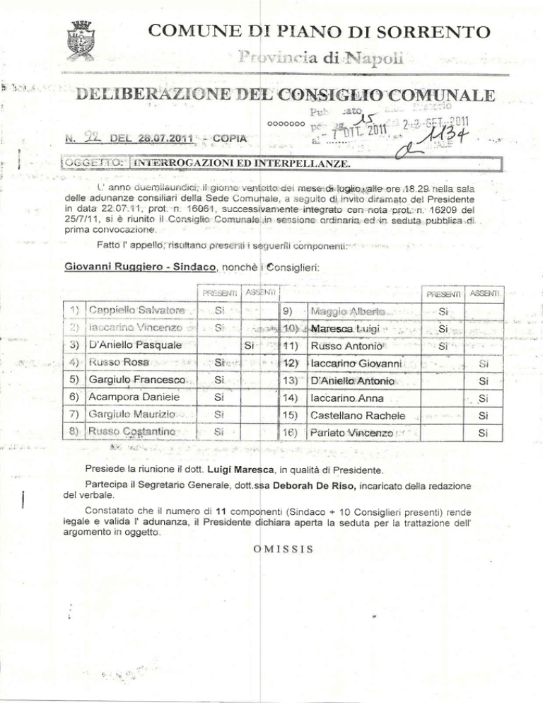 Constatatoche il numerod i 1 1 c o m p o n e n t( iS i n d a c o+ 1 0 C o n s i g l i e p