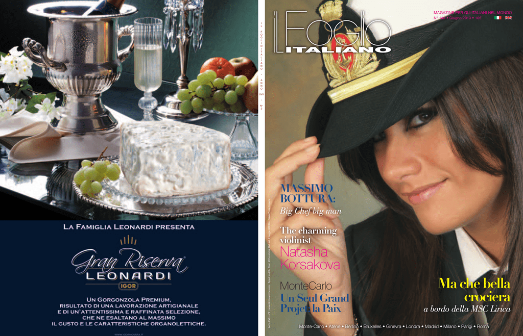 MAGAZINE PER GLI ITALIANI NEL MONDO N° 143 • Giugno 2013 • 10€ I L F O G L I O I T A L I A N O • A N N O XVII • Anno XVII • n°2 • www.iliomasprone.com • Sped. in Abb. Post. 45% comma 20/b art. 2 Legge 662/96 • Filiale Poste Imperia N° 2 MASSIMO BOTTURA: Big Chef big man The charming violinist Natasha Korsakova MonteCarlo Un Seul Grand Projet: la Paix Ma che bella crociera a bordo della MSC Lirica Monte-Carlo • Atene • Berlino • Bruxelles • Ginevra • Londra • Madrid • Milano • Parigi • Roma Tobias Regell Quercia rovere, quercus robur, piantata da Julie de Rothschild al Château de Pregny. Testimone di una collezione di famiglia sviluppata nel corso degli anni. Un PATRIMONIO PATRIMONIO sisi trasmette trasmette ee permette permette Un anche di di esplorare esplorare nuovi nuovi orizzonti. orizzonti. anche Erede di di un’esperienza un’esperienza familiare familiare esemplare esemplare da da più più di di 250 250 anni, anni, ilil Gruppo Gruppo Erede Edmond de de Rothschild Rothschild propone propone di di dare dare rilievo rilievo alla alla gestione gestione del del vostro vostro Edmond patrimonio:gestione gestioneprivata, privata,ingegneria ingegneriapatrimoniale patrimonialeeefiscale, fiscale,filantropia, filantropia, patrimonio: familygovernance, governance,investimenti investimentiorientati orientatialalfuturo, futuro,apertura aperturainternazionale. internazionale. family Veniteaacondividere condividerecon connoi noiquesta questaidea ideadel delpatrimonio patrimonio Venite PRIVatEBankIng BankIng PRIVatE Banquededegestion gestionEdmond EdmonddedeRothschild Rothschild- -Monaco Monaco Banque LesTerrasses Terrasses- -2,2,avenue avenuededeMonte-Carlo Monte-Carlo- -98000 98000Monaco Monaco Les T. +377 93 10 47 47 T. +377 93 10 47 47 edmond-de-rothschild.mc edmond-de-rothschild.mc 8 12 24 32 36 Editoriale Dove va questa “nostra” Europa? di Ilio MASPRONE Ma che bella Crociera A bordo della MSC “Lirica” di Ilio MASPRONE Laboratorio d’idee: Parigi, Monte-Carlo, Bordighera storie di uomini e di visioni a cavallo tra due secoli di Federica NATTA Maria Teresa Verda-Scajola Studiosa d’Arte di Federica NATTA Un Solo Grande Progetto: la Pace di Ely GALLEANI In copertina: Manuela Carusio Vice Commissario MSC. som sommario 6 44 54 64 72 78 86 L’affascinante Natasha Korsakova russa, greca ed ora anche un po’... italiana di Veronica SENATORE Gerlando Colombo l’artigiano della pittura pop di Danilo D’AMICO IRENE BRIN: UN’ANIMA ELEGANTE “Il primo dovere di chi ha molto denaro è spenderlo, con grazia ed eleganza” di Framcesca ROTTA-GENTILE Il Salone del Libro: dove hanno osato le idee... di Silvia BERLINGUER Massimo Bottura: big Chef big man di Marichele BRUSA Dai Grand Hotel della Belle Epoque alle antiche dimore della nobilità di Arianna CARACCIOLO maire www.iliomasprone.com 7 editoriale Forse è ora di renderci conto che la crisi economica mondiale che stiamo vivendo, pur avendo punti in comune con altre del passato, ad esempio nei confronti della disoccupazione e del crollo dei consumi, dell’emigrazione e delle rivendicazioni popolari, in Europa è oggi soprattutto ideologico - politica, e che il nostro “Bel Paese” in particolare sta scontando l’evidente disparità nei confronti dell’Europa cosiddetta unita. Per quanto riguarda il mercato del lavoro, occupazione e sviluppo, è comprensibile il disorientamento dei molti giovani che, volenti o nolenti, sono costretti a cercare lavoro all’estero perché l’Italia non è in grado di garantir loro un futuro; e grande è lo sgomento che prende assistendo alla chiusura di moltissime piccole e medie aziende, che finora hanno costituito il tessuto portante dell’economia italiana, e alla conseguente disperazione di cinquantenni licenziati che non riescono più a trovare lavoro perché considerati già vecchi, ma nel contempo ritenuti non ancora pensionabili... A questi gravi ed evidenti sintomi di malessere va aggiunto il fatto ormai innegabile che il morbo di cui soffre l’Europa è molto più sottile e pericoloso: infatti, troppo poco è stato realizzato per andare oltre la moneta unica e cercare seriamente, dopo aver fatto l’Europa, di “fare gli europei”. Ho preso in prestito la famosa sentenza vecchia di centocinquant’anni a proposito dell’Italia appena nata (“Fatta l’Italia, ora bisogna fare gli italiani”- rif. gli statisti M.D’Azeglio e/o C.Cavour), perché la ritengo purtroppo di stretta attualità: mettere d’accordo gli Stati d’Europa e far diventare europei i loro cittadini si sta dimostrando un’operazione complessa ed invasiva, in quanto va a toccare punti delicati e nervi scoperti quali, primo tra tutti, l’interesse personale delle nazioni economicamente più ricche e politicamente più stabili. Infatti, è battaglia aperta tra l’austerità metodologica della finanza pubblica inquadrata dal Trattato di Maastricht e il solidarismo sussidiario auspicato e promosso dalle nazioni dell’area Mediterranea. Viene allora legittimo il dubbio che l’Europa unita serva più alla politica che alla gente comune costretta a subirne il disordine, 8 l’arroganza, la precarietà d’intenti. Non vorremmo che i malumori popolari sorti allorché la politica era in procinto di decidere l’unificazione monetaria si rive- di Ilio MASPRONE [email protected] www.iliomasprone.com lassero esatti. Quella stessa classe politica si è seduta sugli allori, e a pagarne l’attuale inadeguatezza siamo noi, a che prezzo e fino a quando nessuno lo può sa- pere. In Italia, intanto, il neonato gruppo parlamentare “5 Stelle” che fa capo al comico genovese Beppe Grillo ha l’intenzione di lanciare per l’anno prossimo un doppio referendum: uno per capire se l’Italia vuole ancora l’Euro, e un secondo per capire se vogliamo davvero restare in Europa. C’è da giurare che l’argomento sarà ampiamente discusso a livello teorico dai nostri politici, europeisti o co