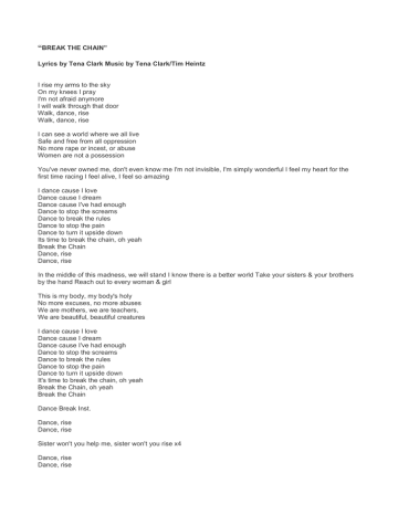 “BREAK THE CHAIN” Lyrics by Tena Clark Music by Tena Clark/Tim