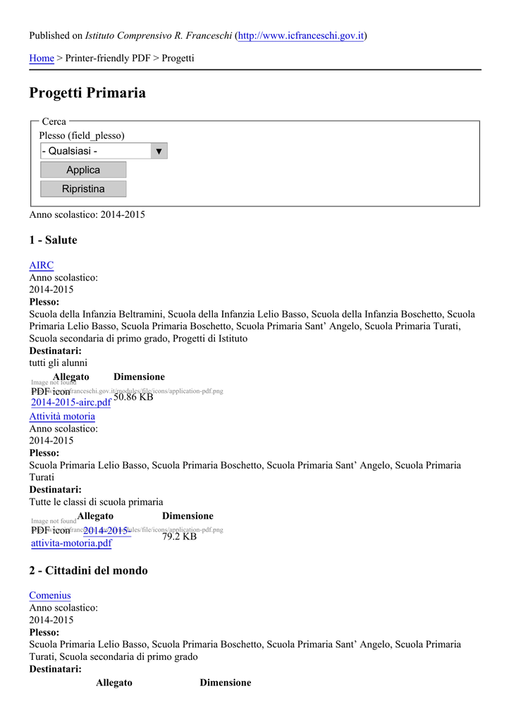 Progetti Primaria - Istituto Comprensivo R. Franceschi
