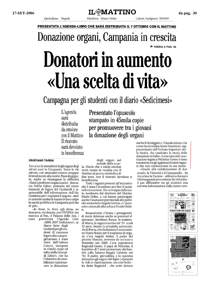Donazione organi, Campania in aumento