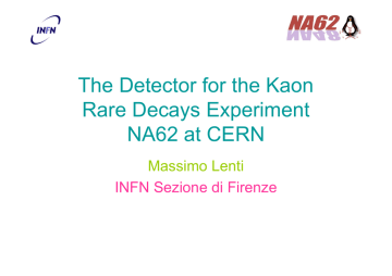The Detector for the Kaon Rare Decays Experiment NA62 at CERN Massimo Lenti INFN Sezione di Firenze Outline of the presentation • • • • • • Physics motivations for K+→π+νν The beam The main background channels The apparatus The signal acceptance and S/B Time schedule and Conclusions IPRD10, 10.5.2010 M. Lenti 2 Physics motivations • Theoretically very clean • Sensitive to Vtd • Very sensitive to New Physics Present (E787/949): BR(K+→π+νν) = 1.73 with 7 events Predicted: " +1.15 -1.05 ×10-10 Need a 10% measurement (100 events): NA62 IPRD10, 10.5.2010 M. Lenti 3 How many + K decays? • BR(K+→π+νν) ~ 8×10-11 • Look for ~100 signal events • Signal acceptance ~ 10% ] ~1013 K+ decays NA48/NA62 Use the existing CERN accelerators Use the existing NA48 experimental hall IPRD10, 10.5.2010 M. Lenti 4 The Beam Primary Beam: • 400 GeV/c protons • 3×1012 protons/pulse (3×NA48/2) • 4.8/16.8 s duty cycle Secondary Beam: • 75 GeV/c momentum (Δp/ p~1%) • Beam acc.: 12.7 µstr (32×NA48/2) • Total rate: 750 MHz • K+ ~ 6% • 4.5×1012 K+decays/y (45×NA48/2) IPRD10, 10.5.2010 M. Lenti 5 The Beam purity Only 6% K+ but: • protons and positrons don’t decay... • pions and muons decays cannot mimic K+ decays • but beam-gas interactions !! Keep vacuum at 10-6 mbar: use existing NA48 decay tank (already directly measured) Tag the K+ in the beam: use a CEDAR IPRD10, 10.5.2010 M. Lenti 6 The CEDAR The CEDAR is a Cherenkov counter Used at CERN since long time Vary gas pressure and diaphragm aperture to select K+ November 2006: test beam with a CEDAR 100 GeV/c beam Filled with Nitrogen Adapt to NA62 needs: Fill with 4 bar Hydrogen (<7⋅10-3 X0) Change PMT and FE IPRD10, 10.5.2010 M. Lenti 7 Background: K+ decays Decay BR µ+ν (Κµ2) 63.5% π+π0 (Κπ2) 20.7% π+π+π- 5.6% π0e+ν (Κe3) 5.1% π0µ+ν (Κµ3) 3.3% π+π0π0 1.8% µ+νγ (Κµ2γ) π+π0γ 2.7×10-4 π+π-e+ν (Ke4) 4.1×10-5 π0π0e+ν (Ke400) 2.2×10-5 e+ν 1.5×10-5 (Ke2) π+π-µ+ν (Kµ4) IPRD10, 10.5.2010 0.62% 1.4×10-5 M. Lenti 8 Kinematics K+ ν θKπ ν m2miss=(PK-Pπ)2 92% K+ decays 8% K+ decays PK : beam spectrometer Pπ : straw chambers spectrometer IPRD10, 10.5.2010 M. Lenti 9 Beam Spectrometer (I) • 3 Silicon Pixels stations across the 2nd Achromat: 60(X) × 27(Y) mm per station (18000 pixel/station) • Beam rate: 750 MHz (“Gigatracker”), 50 MHz/cm2 IPRD10, 10.5.2010 M. Lenti 10 Beam Spectrometer (II) • 300×300 µm pixels p-in-n (18000 pixel per station) • 200 µm Si sensor + 100 µm chip • 0.13 µm CMOS technology Si sensor Pixel matrix IPRD10, 10.5.2010 R-O chip σ(PK)/PK ~ 0.2% σ(θK) ~ 15 µrad <0.5% X0 /station σ(t) ~ 200 ps/station Sensor prototype M. Lenti 11 Beam Spectrometer (III) Readout See M. Noy’s talk VESSEL’S SIDE CLAMPED DETECTOR’S EDGE CLAMPED The cooling System IPRD10, 10.5.2010 DETECTOR’S EDGE SLIDING M. Lenti VESSEL’S SIDE SLIDING 12 Straw Chambers • 4 chambers with 4 layers/view • Ø 9.6 mm straw tubes in vacuum • 2.1 m long straws • 0.1% X0 per view (4 views) • 130 µm hit resolution per view • NA48 magnet (256 MeV/c pt kick) • holes follow beam path IPRD10, 10.5.2010 M. Lenti 13 Straws Prototype In vacuum 2007 prototype IPRD10, 10.5.2010 M. Lenti 14 Kinematics Reco. Missing mass measurement: dominated by angle between Kaon and pion IPRD10, 10.5.2010 M. Lenti 15 Background 1: K+→µ+ν Kµ2 :largest BR: 63.4% Need ~10-12 rejection factor • Kinematics: 0.5×10-5 • Muon Veto: 10-5 • Particle ID: 10-2 MUV RICH IPRD10, 10.5.2010 M. Lenti 16 Muon Veto: MUV • Re-use of Front Module of NA48 Hadron Calorimeter Build a new module Build a Fast Plane for trigger 10-5 µ detection inefficiency New module: sandwich of iron plates and scintillator strips IPRD10, 10.5.2010 M. Lenti 17 The NA62 RICH 3σ π-µ separation (15-35 GeV/c) • Neon at 1 atm (π thresh.:12 GeV/c) • 2000 PMT • 18 mm pixel • 100 ps Mirrors 17 m Beam Pipe PMT: Hamamatsu R7400 U03 IPRD10, 10.5.2010 M. Lenti 18 RICH prototype: 2009 test beam 15 GeV/c π e µ p×mπ/mµ Ring Radius (mm) 35 GeV/c π e p×mπ/mµ Muon suppression (15.35 GeV/c): 0.7% (see E.Marinova’s talk) IPRD10, 10.5.2010 Ring Radius (mm) M. Lenti 19 Background 2: K+→π+π0 (Kπ2) 2nd Largest BR: 20.9% Need ~10-12 rejection factor • Kinematics: 5×10-5 • Photon Veto: 10-5 per photon (10-8 per π0) " Large angle: 12 ANTIs (8.5 < acceptance < 50 mrad) " Medium angle: NA48 LKr (1 < acceptance < 8.5 mrad) " Small angle: IRC, SAC (acceptance < 1 mrad) IPRD10, 10.5.2010 M. Lenti 20 Large Angle Veto • 12 ring em calorimeters in vacuum • 5 staggered planes per ring • inefficiencies: <10-4 Eγ<1 GeV <10-5 Eγ>1 GeV OPAL Lead Blocks reused IPRD10, 10.5.2010 M. Lenti 21 Large Angle Veto: 1° ring First ring built in Frascati and installed at CERN. Test beam in mid-october 2009 2° ring under test beam august 2010 IPRD10, 10.5.2010 M. Lenti See Poster by P. Valente 22 Small Angle Veto • shaslyk calorimeter on the beam axis • 10-5 ineff. High energy γ Tested in October 2006 In the NA48 tagged photon beam (see later) IPRD10, 10.5.2010 M. Lenti 23 Liquid Kripton Calorimeter Use the existing NA48 LKr calorimeter • 10-5 ineff. Eγ>5 GeV • 10-4 ineff. 1<Eγ<5 GeV Ineff. for Eγ>10 GeV tested on data collected by NA48/2 (K+→π+π0) IPRD10, 10.5.2010 M. Lenti 24 Liquid Kripton Calorimeter (II) vacuum Electron beam (25 GeV/c) Bremsstrahlung Magnet Calorimeter eγ Drift chambers Energy deposition in LKr • 2×108 electrons collected • 10-5 ineff.sensitivity below 10 GeV IPRD10, 10.5.2010 October 2006 test: Tagged photon beam Using the existing NA48 setup M. Lenti Energy GeV Kevlar window 25 X LKr cm Multibody Background Ex. K+→π+π-e+ν Stagger Straws to be hermetic for πup to 60 GeV/c IPRD10, 10.5.2010 M. Lenti 26 CHANTI • Need to veto inelastic scattering in Gigatracker and last collimator • Veto stray muons upstream • Need a CHarged ANTIcounter 1600 mm 