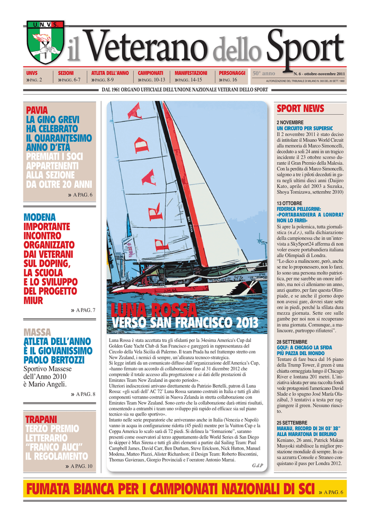 Il Veterano dello Sport n. 6/2011 - Unione Nazionale Veterani dello