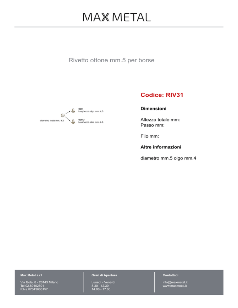 Rivetto ottone mm.5 per borse Codice: RIV31