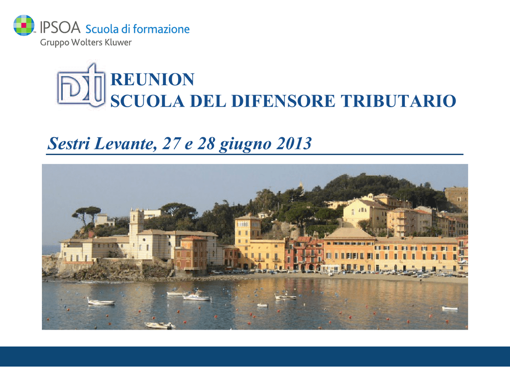 REUNION SCUOLA DEL DIFENSORE TRIBUTARIO Sestri Levante, 27 e 28 giugno 2013 Hotel Convenzionati € 120 Sito www.hotelgrandealbergo.it € 150 www.hoteldeicastelli.it Hotel Vis à Vis**** DOPPIA DUS/SINGOLA € 180 € 140 www.hotelvisavis.com € 115 www.duemarihotelsestrilevante.it www.hotelaurorasl.com € 80 www.hotel-sereno.com Villa Jolanda DUS SINGOLA € 60 € 45 www.villajolanda.it Per prenotare una struttura alberghiera in occasione della Reunion, individua la struttura ricettiva che meglio risponde ai tuoi fabbisogni personali dall’elenco degli alberghi convenzionati