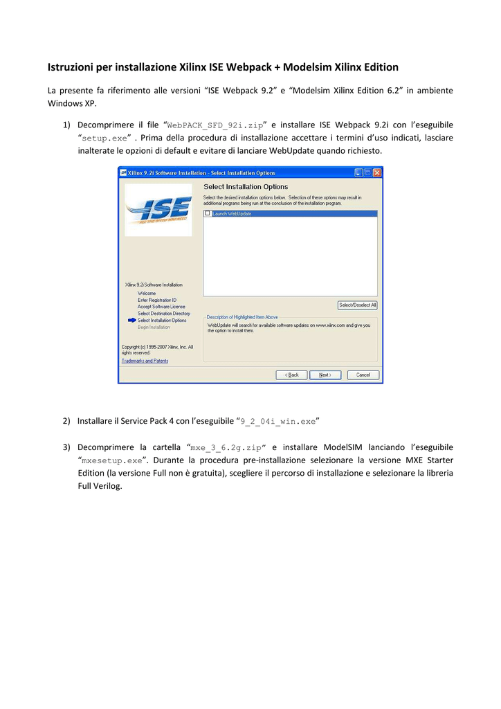 Installazione ISE WebPack 6.3 e Modelsim Xilinx Edition (MXE) Step