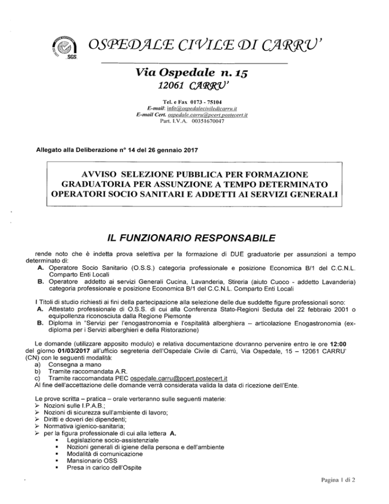 Documento di avviso selezione pubblica per formazione graduatoria