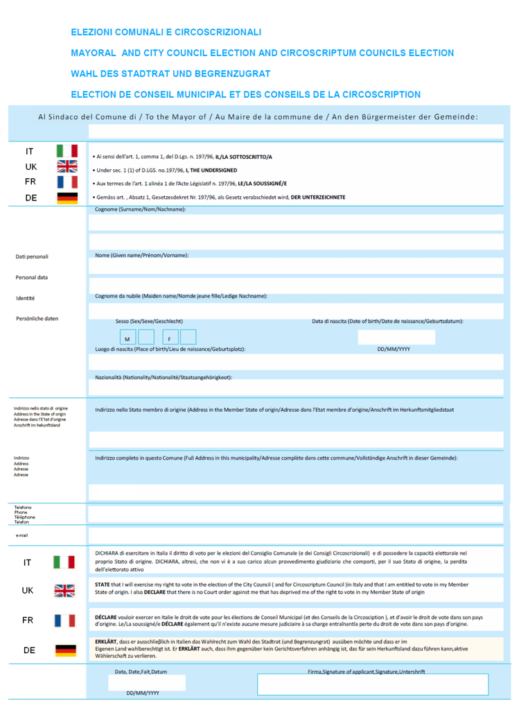 domanda di iscrizione