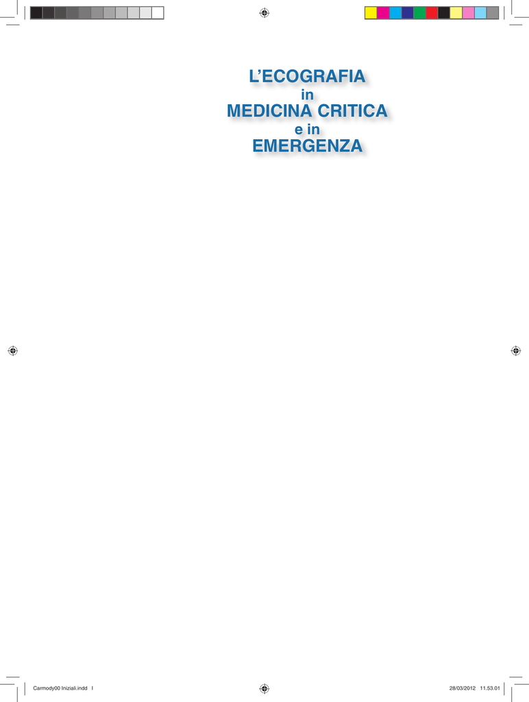 L’ECOGRAFIA in MEDICINA CRITICA e in EMERGENZA Carmody00 Iniziali.indd I 28/03/2012 11.53.01 Dello stesso Editore BIAGINI – Diagnostica per immagini BIAGINI – Radiobiologia e radioprotezione BONE – Medicina d’urgenza CHIAPPINO/NICOLI – L’infermiere del lavoro e il primo soccorso in fabbrica CHIARANDA – Guida illustrata delle emergenze (+ DVD) CHIARANDA – Urgenze ed emergenze. Istituzioni CIARAMELLA – Soccorso di base. Nozioni e tecniche CORDIANO/MOTTON – Attualità e controversie in chirurgia d’urgenza DE SANTIS – L’artrosi di ginocchio KATZUNG - Farmacologia Medica GARDES – Nursing in radioterapia. L’infermiere e la tecnologia GIUNTI/LAUS – Le radicolopatie spinali GORGASS/AHNEFELD – Primo soccorso nelle emergenze HALHUBER/KIRCHMAIR – Vademecum di diagnostica e terapia d’urgenza HEUCK et Al. – Atlante RM dell’apparato muscoloscheletrico LENTINI/GOLFIERI – Diagnostica per immagini. Tomografia Computerizzata e Risonanza Magnetica MANUALE DI SEGNI & SINTOMI MAZZUCATO – Anatomia radiologica. Tecniche e metodologie in radiodiagnostica MILLS – Atlante degli incidenti e delle emergenze PASTORE – Ultrasonografia in ostetricia e ginecologia PISTOLESI/PROCACCI – Vademecum alla tomografia assiale computerizzata del torace PULCINI et Al. – Pronto soccorso. Dall’emergenza all’urgenza con le sole mani SERNIK – Ultrasonografia del sistema muscoloscheletrico STONE/HUMPHRIES – Le emergenze. Diagnosi e trattamento attuali VILLARI et Al. – Diagnostica per immagini. Medicina nucleare. Radioterapia ZANGARDI/DA DALT – Il triage pediatrico *** Atlanti di Anestesia collana diretta da Ronald D. Miller Vol I Miller/Kirby - Terapia Intensiva Vol II Miller/Schwinn - Basi Scientifiche dell’Anestesia Vol III Miller/Lichtor - Preparazione Preoperatoria e Monitoraggio Intraoperatorio Vol IV Miller/Tremper - Principi di Tecniche ed Emergenze Anestesiologiche Vol V Miller/Muravchick - Anestesia nelle specialità Vol VI Miller/Abram - Trattamento del Dolore Vol VII Miller/Greeley - Anestesia Pediatrica Vol VIII Miller/Reves - Anestesia cardiotoracica Carmody00 Iniziali.indd II 28/03/2012 11.53.03 Kristin A. Carmody, MD, RDMS, RDCS Director of Emergency Ultrasound, Boston Medical Center Assistant Professor of Emergency Medicine Boston University School of Medicine, Boston, Massachusetts Christopher L. Moore, MD, RDMS, RDCS Director of Emergency Ultrasound Assistant Professor of Emergency Medicine Yale University School of Medicine, New Haven, Connecticut David Feller-Kopman, MD Director, Bronchoscopy and Interventional Pulmonology Associate Professor of Medicine Johns Hopkins Hospital, Baltimore, Maryland L’ECOGRAFIA in MEDICINA CRITICA e in EMERGENZA Edizione italiana a cura di Maurizio Chiaranda Professore Ordinario di Anestesiologia Università degli Studi dell’Insubria, Varese Carmody00 Iniziali.indd III 28/03/2012 11.53.03 Titolo originale Handbook of Critical Care and Emergency Ultrasound Copyright © 2011 by The McGraw-Hill Companies, Inc. All righst reserved Tutti i diritti sono riservati È VIETATA PER LEGGE LA RIPRODUZIONE IN FOTOCOPIA E IN QUALSIASI ALTRA FORMA È vietato riprodurre, archiviare in un sistema di riproduzione o trasmettere sotto qualsiasi forma o con qualsiasi mezzo elettronico, meccanico, per fotocopia, registrazione o altro, qualsiasi parte di questa pubblicazione senza autorizzazione scritta dell’Editore. Ogni violazione sarà perseguita secondo le leggi civili e penali. Avvertenza La Medicina è una scienza in continuo cambiamento. Non appena nuove ricerche ed esperienze cliniche allargano le nostre conoscenze, si richiedono modifiche nel trattamento e nella terapia farmacologica. L’editor e la casa editrice di questo volume hanno controllato le fonti ritenute affidabili nei loro sforzi per fornire informazioni complete ed in genere in accordo con gli standard validi al momento della pubblicazione. Tuttavia, in considerazione della possibilità di errori umani o modifiche nelle scienze mediche, né l’editor, né la casa editrice, né qualsivoglia altra persona implicata nella preparazione o pubblicazione di questo libro garantiscono che l’informazione ivi contenuta è per ogni riguardo accurata o completa e declinano ogni responsabilità per qualsivoglia errore od omissione o per i risultati ottenuti mercé informazioni contenute in questo testo. Si incoraggiano i lettori a confermare le informazioni quivi contenute con altre fonti. Per esempio ed in particolare si invitano i lettori a controllare il foglietto illustrativo incluso nel confezionamento di ciascun farmaco che essi pianificano dover somministrare per esser certi che l’informazione contenuta in questo testo sia accurata e che non siano state apportate modifiche nella dose raccomandata o controindicazioni per la somministrazione. Questa raccomandazione è particolarmente importante relativamente a nuovi farmaci o farmaci non frequentemente utilizzati. ISBN 978-88-299-2172-0 Stampato in Italia Copyright © 2012 by Piccin Nuova Libraria S.p.A., Padova www.piccin.it Carmody00 Iniziali.indd IV 28/03/2012 11.53.03 Questo libro è dedicato a tutti i pazienti che si affidano alle nostre cure e per i quali l’ecografia può facilitare il percorso diagnostico-terapeutico e l’esecuzione delle procedure nel modo più sicuro. Carmody00 Iniziali.indd V 28/03/2012 11.53.04 PREFAZIONE DELL’EDIZIONE ORIGINALE Negli ultimi decenni, i progressi tecnologici dell’ecografia sono stati sbalorditivi. Al giorno d’oggi l’utilizzazione dell’ecografia è ampiamente diffusa in quanto essa costituisce uno strumento accessibile, sicuro, portatile, versatile, e con immagini di alta qualità per la diagnosi e il controllo delle procedure invasive in una vasta gamma di specialità medico-chirurgiche. Tuttavia l’ecografia è pur sempre una tecnologia operatore-dipendente e può risultare efficace solo se utilizzata da operatori che capiscano cosa si può ottenere con 