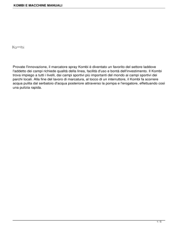 KOMBI E MACCHINE MANUALI Provate l'innovazione, il marcatore spray Kombi è diventato un favorito del settore laddove l'addetto dei campi richiede qualità della linea, facilità d'uso e bontà dell'investimento. Il Kombi trova impiego a tutti i livelli, dai campi sportivi più importanti del mondo ai campi sportivi dei parchi locali. Alla fine del lavoro di marcatura, al tocco di un interruttore, il Kombi fa scorrere acqua pulita dal serbatoio d'acqua posteriore attraverso la pompa e l'erogatore, effettuando così una pulizia rapida. 1/5 KOMBI E MACCHINE MANUALI CARATERISTICHE TECNICHE: Macchina alimentata a batteria con 8 ore di autonomia. principale per prodotto da 25 lt. Miscelatore interno per amalgamare ildel prodotto. Ruote pneumatiche su cuscinetti. Erogatore (KNIB) utilizzabile sia anteriormente che lateralmente. Serbatoio ausiliario ill'erogazione lavaggio della macchina da 8 lt. -- ACCESSORI Segnalatore a LED dello stato diricaricabile carica della batteria. APPLICABILI ALLA TRACCIATORE KOMBI BRACCIO La marcatura PER di corsie L'ATLETICA delle piste di atletica diventa facile con il braccio per l'atletica. Basta inserire il bra Grazie ad un'altezza regolabile a Quattro lively, ad un braccio facilmente inseribile ed estraibile con un'a BRACCIO SPRAT 2/5 KOMBI E MACCHINE MANUALI LANCIA La lancia Aa MANO mano Kombi è l'optional ideale per marcare dischi e riempire le aree difficili da raggiungere. KNIB Knib con CON ruota RUOTA di nuova generazione, per superfici dimacchine gioco perfettamente e ruota, non perfettamente reg MACCHINE CON TRASFERIMENTO A RUOTA La ruota, la miglior invenzione di tutti iprodotto. tempi! In medesimo esclusivo superficie prevengono acciaio serbatoio inossidabile diimpiego sversamenti gioco. Ilin ricurvo, serbatoio tutti o rivestito, ei sprechi campi in modo è facile la sportivi digamma da da raccogliere nazionali pulire Fleete di semplici e più parchi vernice coperchi locali. con dal Tutte serbatoio trasferimento a pressione le piatte macchine e trasferirla ed a estrazione hanno alla trova un il Uso TIM Ruota da o Elite. 9 principale: litri. tracciante Usare campi con standard vernice da tennis daPitchmarker 2''.ed Serbatoio erbosi. B Plus 3/5 KOMBI E MACCHINE MANUALI Uso ARNOLD Ruota da o Elite. 13,5 principale: tracciante litri. Usare sport standard con suvernice erba, da 3'' campo Pitchmarker e 4'', eserbatoio pista.B Plus Uso LIONEL Ruota da o Elite. 18 principale: tracciante Usare standard consu erba, da 3'' Pitchmarker campo e eserbatoio pista. B Plus materiale Asport SECCO IMARCATURA erba contemporaneamente La Una una mm, sistemi macchina marcatura struttura mentre e litri. di di altre per marcatura ilStarliner, leggera superfici controllo superfici semplice combinata avernice sul adatto in del da secco ma associazione suolo gioco. flusso accurata. ad offrono riducendo con ogni La è4'', determinato polvere larghe tempo, un Starliner alla metodo la polvere ruote riveste quantità sono offre dalla conveniente disicuri Easiflo, gli trasporto una velocità disteli materiale ed linea d'erba èecologici. diventata dell'operatore. ee disottili semplice ampiezza necessario depositandosi ruote una per variabile di favorita Sia la per guida, marcatura Easiflo la del marcatura. fino assicurano settore. che a 100 diil STARLINER Progettato Semplice gallocciate. eper conveniente, PLUS l'uso su campi disponibile da gioco suerbosi. ruote <object name="allowscriptaccess" mp;autoplay=0&loop=0" _title=1&show_byline=1&show_portrait=1&color=00ADEF&fullscreen=1&a value="http://vimeo.com/moogaloop.swf?clip_id=15599776&server=vimeo.com&show autoplay=0&loop=0" tle=1&show_byline=1&show_portrait=1&color=00ADEF&fullscreen=1& src="http://vimeo.com/moogaloop.swf?clip_id=15599776&server=vimeo.com&show_ti allowscriptaccess="always" href="http://vimeo.com/15599776">Untitled</a> width="400" height="320"><param type="application/x-shockwave-flash" value="always" width="400" /><embed height="320"></embed></object><p><a /><param name="allowfullscreen" from on <a name="movie" <ahref="http://vimeo.com">Vimeo</a>.</p> allowfullscreen="true" value="true" /><param href="http://vimeo.com/user4488296">Veris</a> TRACCIATURA SPRAY 4/5 KOMBI E MACCHINE MANUALI AEROLINER Macchina a 4 5ruote, ampiezza della linea regolabile. Da utilizzarsi con bombolette AREOSOL da 750 ml 5/5