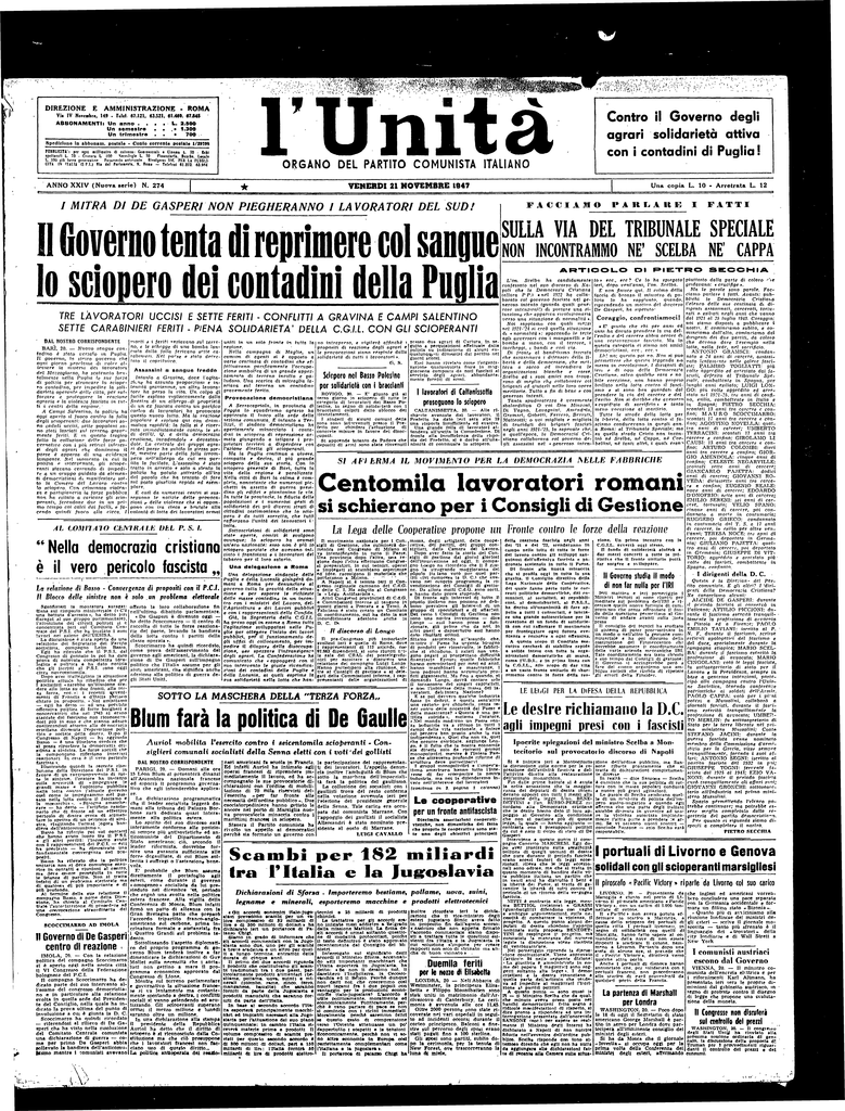 dalla Provocazione democristiana terzo giorno l o sciopero di tutte l e