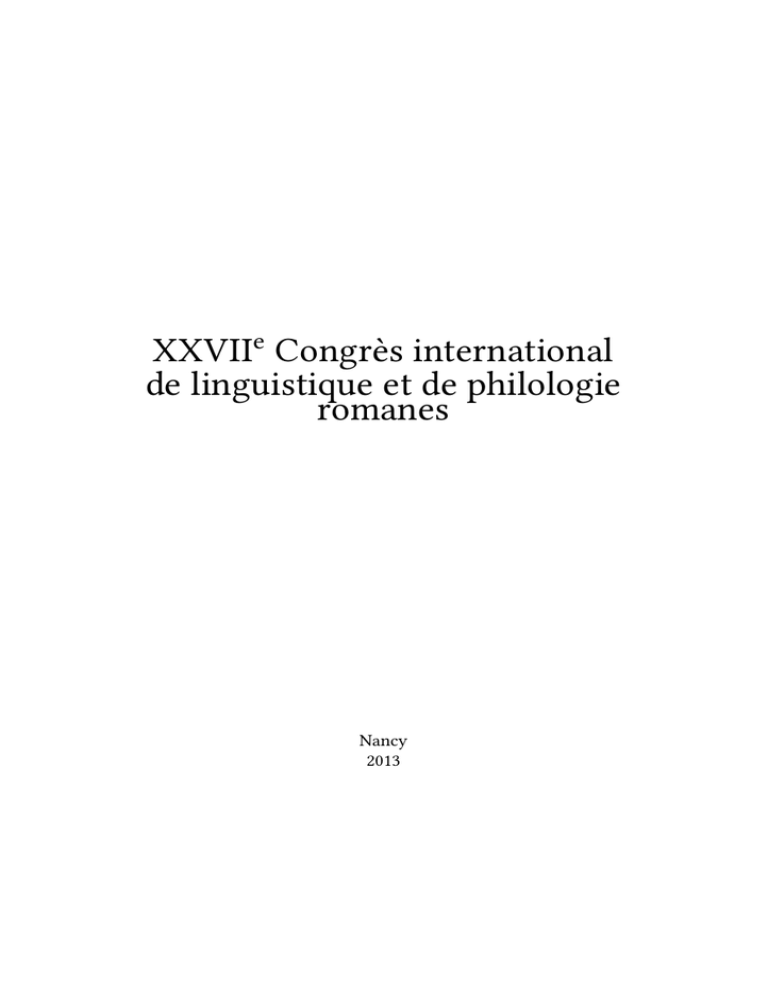 Section 2 : Linguistique latine/linguistique romane . . . .