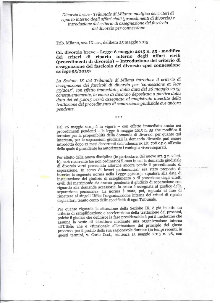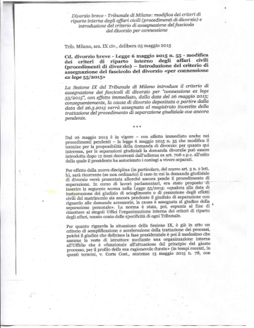 Divorzio breve - Tribunale di Milano.