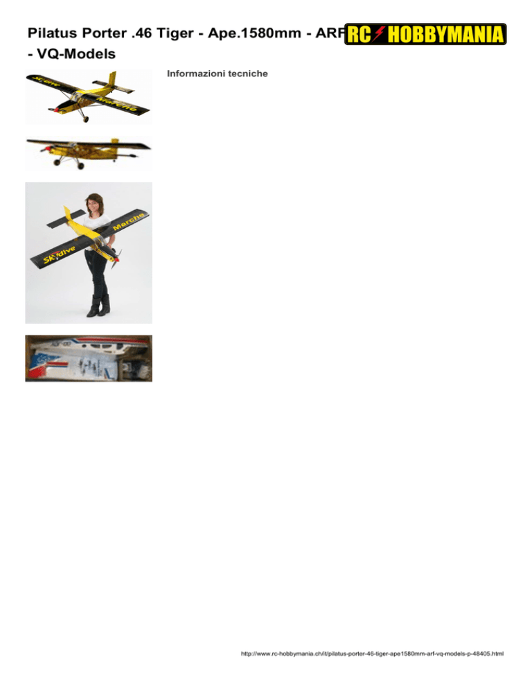 Pilatus Porter .46 Tiger - Ape.1580mm - ARF - VQ-Models Informazioni tecniche http://www.rc-hobbymania.ch/it/pilatus-porter-46-tiger-ape1580mm-arf-vq-models-p-48405.html