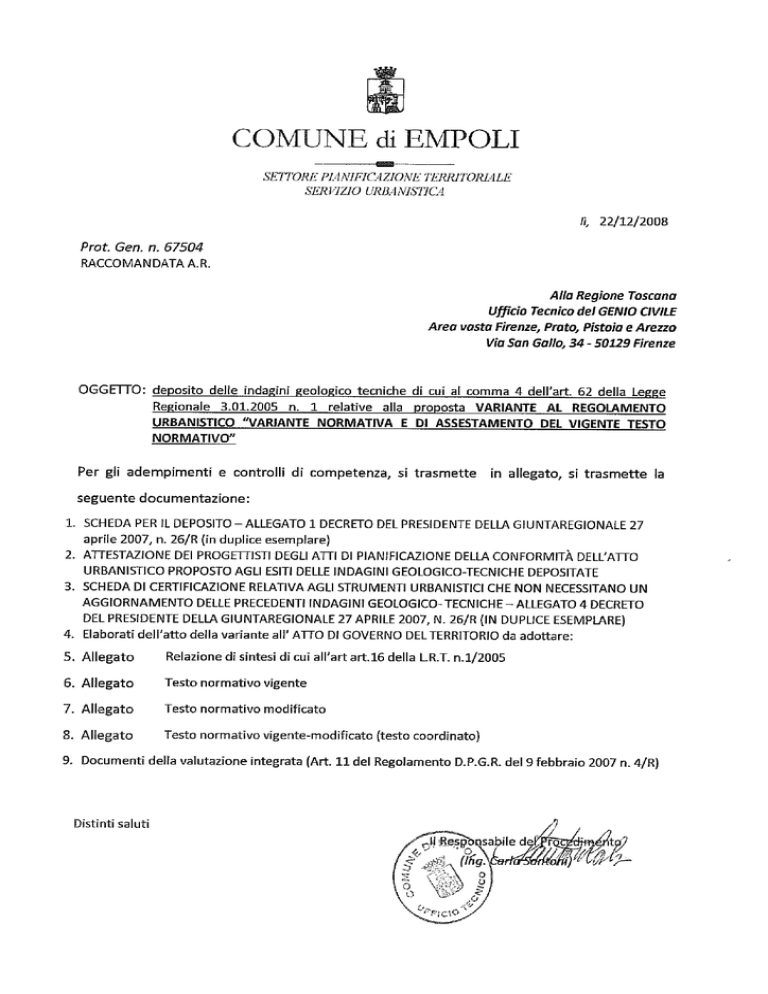 Documentazione per deposito presso Genio civile ai sensi dell`Art