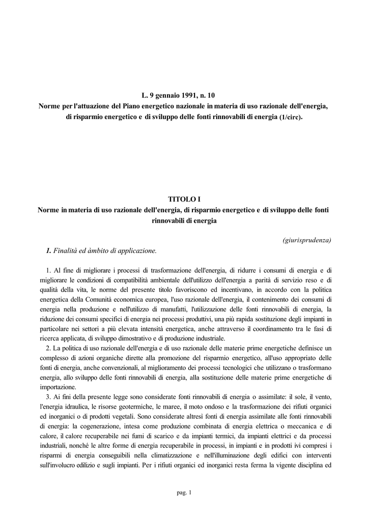 Legge 9 gennaio 1991, n. 10