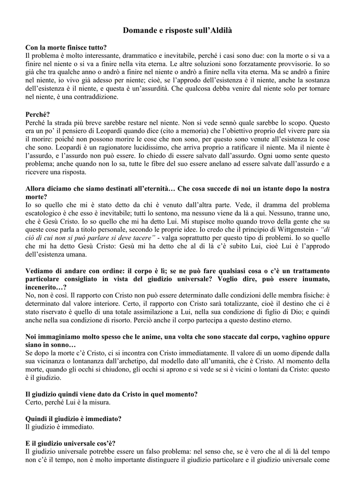 Domande e risposte sull`Aldilà
