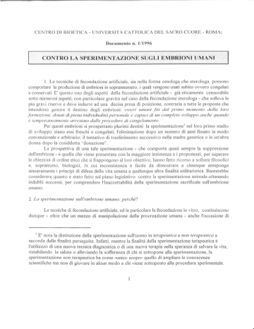 Doc. n. 1/1996 Contro la sperimentazione sugli embrioni umani