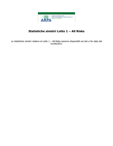 Statistiche sinistri Lotto 1 – All Risks Le statistiche sinistri relative al Lotto 1 – All Risks saranno disponibili sul sito a far data dal 01/09/2011