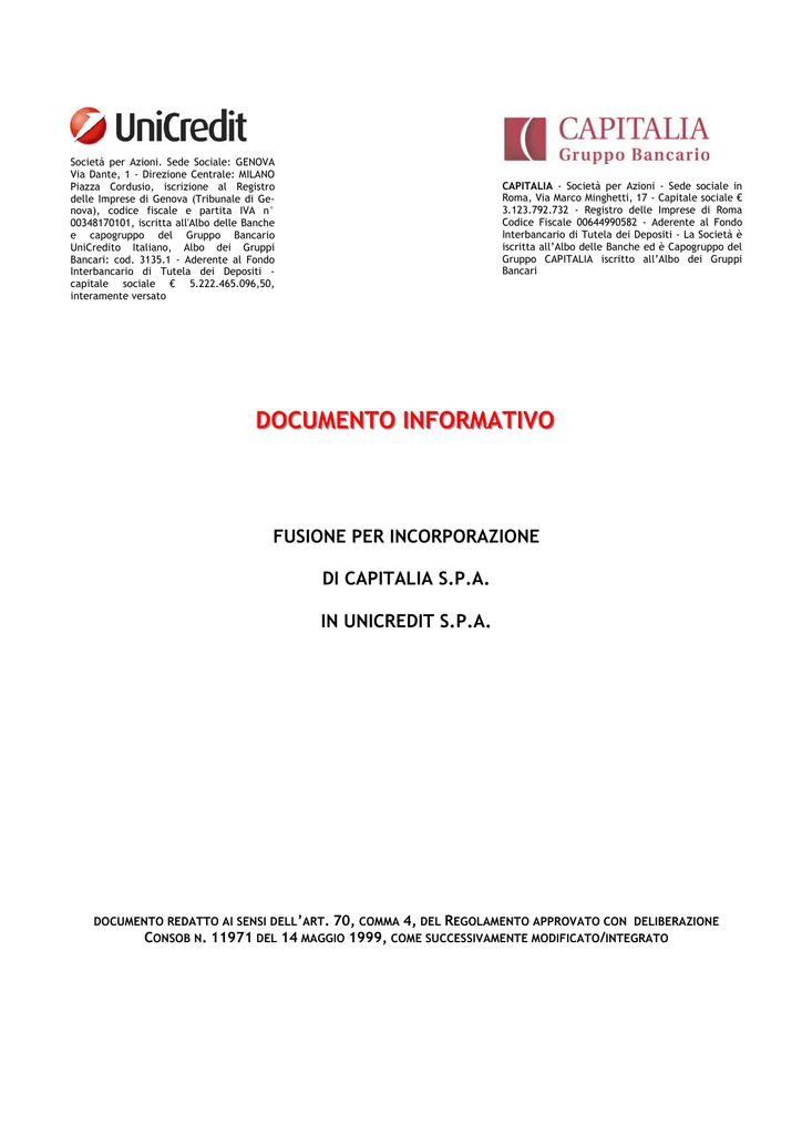 CAPITALIA - Società per Azioni - Sede sociale in