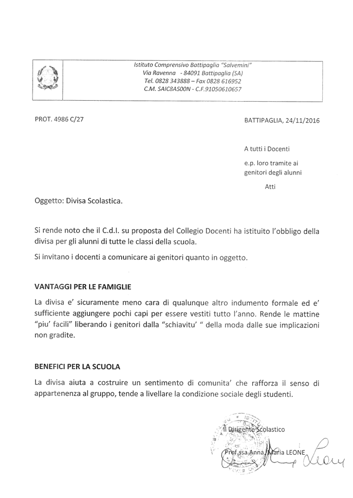 DIVISA SCOLASTICA - Istituto Comprensivo Salvemini