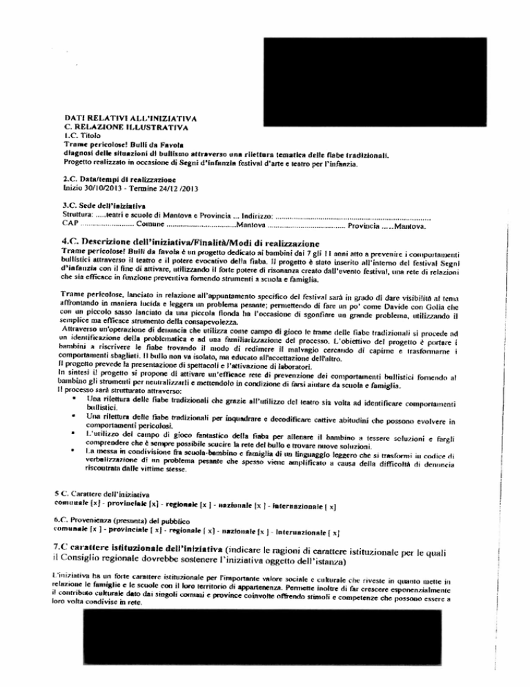 Domanda Segni d`Infanzia Associazione Artistica e Culturale di