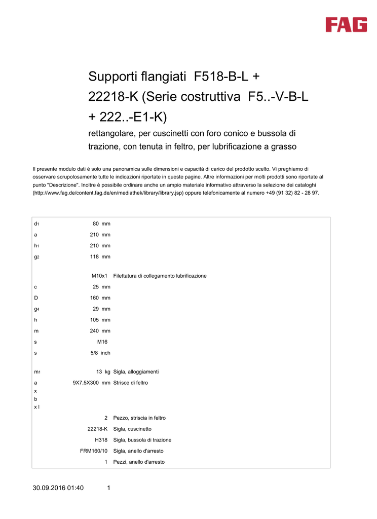Supporti flangiati F518-B-L + 22218-K (Serie costruttiva F5..-V-B
