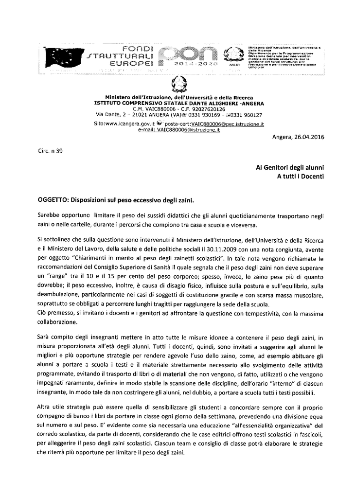 disposizioni peso eccessivo zaini
