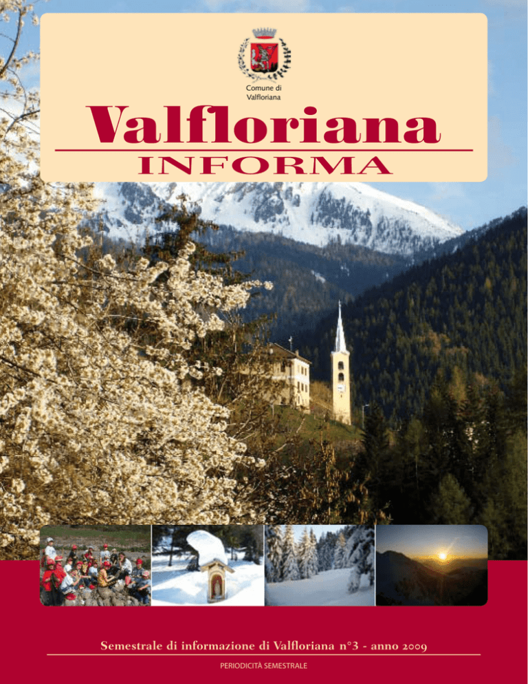 Comune di Valfloriana Valfloriana INFORMA Semestrale di informazione di Valfloriana n°3 - anno 2009 Periodicità semestrale INDICE IL SALUTO DEL SINDACO Comune di Valfloriana VALFLORIANA NOTIZIE Registrazione tribunale di Trento n° 1345 del 20/12/2007 n° 3 Anno 2009 Semestrale Poste Italiane Spa Spedizione in a.p. 70% CNS Trento Editore Comune di Valfloriana Membri comitato di redazione Presidente sindaco p.t. Graziano Lozzer; Cons. Ivo Genetin rapp. Gruppo di minoranza; Ass. alla Cultura Maurizio Zampedri rapp. Gruppo di maggioranza; dott. Matteo Sevegnani Responsabile Servizi Demografici dipendente comunale in qualità di collaboratore Progetto grafico Media.22 Stampa Litografica Editrice Saturnia (TN) Direttore Editoriale Graziano Lozzer Direttore Responsabile Zeno Perinelli Fotografie Target’s NewLine Angelo Riva Maurizio Zampedri Matteo Sevegnani Giancarlo Genetin Tutti i diritti riservati. © Comune di Valfloriana IL SALUTO DEL SINDACO Ai censiti e agli amici di Valfloriana 3 Graziano Lozzer NOTIZIE DAL VICESINDACO Una bella esperienza 6 L’AMMINISTRAZIONE COMUNALE Notizie dagli Assessorati all’Ambiente ed ai Lavori Pubblici 7 Notizie dall’Assessorato alla Cultura, alla Sanità e alle Politiche Sociali 12 ASSOCIAZIONI Il “Minicoro La Valle” Associazione Dora’ e Palu’ Vigili del Fuoco Volontari di Valfloriana Circolo Anziani e Pensionati di Valfloriana Il Coro Parrocchiale di Valfloriana Circolo Culturale di Valfloriana Comitato Carnevale Tradizionale di Valfloriana in Europa A.D.V.S.P. Inaugurazione cucina Circolo Anziani Cassa Rurale di Fiemme Gruppo Alpini Fratelli Tomasi Scuola dell’Infanzia di Valfloriana Scuola Primaria di Valfloriana La voce dei giovani 15 17 18 24 25 26 28 30 31 32 34 38 39 40 VARIE Pensieri d’inverno Inaugurazione cucina centro anziani Bilancio personale di una legislatura Racconto di un ricordo di guerra Inaugurazione Malga Coston Neoconsigliere Tomasini Federica “Due strade” per Valfloriana Fotografia! Quanta passion, quanta passion Servizio in materia fiscale 42 44 45 46 47 48 49 51 53 POESIE 54 LETTERE 56 ALLEANZA CIVICA L’informazione di Alleanza Civica 60 AI CENSITI E AGLI AMICI DI VALFLORIANA Un sincero saluto ai lettori di questo numero di Valfloriana Informa. La pubblicazione è un appuntamento che ci permette di presentare alcune significative tappe della vita del nostro Comune. L’iniziativa della pubblicazione di questo bollettino vuole togliere la distanza tra la gente del Comune e gli Amministratori, con lo scopo di informare quanto la Giunta e il Consiglio comunale intendeno fare o hanno eseguito. Questo mi ero proposto cinque anni or sono con la pubblicazione di un bollettino da inviare ai censiti del Comune. “Valfloriana Informa è l’ultimo bollettino informativo che firmo come sindaco, perché come è a tutti ben noto nel mese di maggio del prossimo anno ci saranno nuove consultazioni elettorali.” I cinque anni di sindaco mi sembrano trascorsi come un volo d’uccello. Spesso mi chiedo se la Giunta da me presieduta sia riuscita a dare segnali positivi alle proposte e agli impegni che mi sono assunto nell’accettare la responsabilità di guida del Comune di Valfloriana Come ben sapete il compito che mi ero fissato nel propormi a sindaco cinque anni or sono era quello di dare un nuovo impulso alla nostra Comunità per toglierla da un innato pudore di isolamento che ci faceva vivere giorno dopo giorno chiusi in noi stessi. Questo mi sembra un obiettivo raggiunto, attraverso le molteplici iniziative realizzate con l’apporto unanime di tutti gli Amministratori comunali. Mi sembra riduttivo e non corrispondente a onesto giudizio definire Valfloriana (così era conosciuta) come appartato Comune della Valle di Fiemme, con i suoi monti ricchi di acqua e di funghi. Il nostro Comune, pure con limitato bilancio, ma oculatamente razionalizzato, è stato capace di creare nuove opportunità occupazionali per esprimere tutte le potenzialità presenti tra i nostri abitanti. Infatti, noi siamo partiti da un’attenta analisi della situazione che nell’arco dei cinque anni ci ha permesso oggi di raccogliere determinati frutti. È stata un’operazione politica lungimirante e non semplice; molto si è ottenuto perché ho cercato il confronto e il sostegno dell’intera comunità e delle realtà politiche della Provincia. L’attuazione del piano socio-economico messo in essere in questi anni è sotto gli occhi di tutti. Solo alcuni esempi: la sistemazione dei due ci- INFORMAZIONI UTILI Informazioni dall’Amministrazione 64 Comune di Valfloriana Comune di Valfloriana miteri, luoghi così cari a tutti, che fanno un’ottima impressione per la semplicità ed eleganza. Ancora l’intervento di restauro delle due chiese parrocchiali di Casatta e di Montalbiano nonché le aree adiacenti, progetti approvati dall’Assessorato alla Cultura provinciale con un finanziamento già definito. Il nostro Comune non necessita di strutture turistiche di alto livello; i nostri censiti sanno tutelare il territorio con strutture efficienti rese ora fattibili con la tanto sospirata strada principale che percorrere tutto il Comune, da Casatta fino al Bait del Manz di Sicina. Questo, mi sia lecito dire con orgoglio, fu una conquista per il determinato impegno della mia amministrazione e la volontà politica dell’Assessorato Provinciale ai Lavori pubblici, cosicchè da quest’anno questo percorso è sotto la sua competenza. Ciò solleva le casse comunali da un onore altissimo di costi e nello stesso tempo verrà definita e rettificata la tanto sospirata sistemazione stradale. A quest’opera aggiungo il completamento di sistemazione strade in tutte le frazioni. A queste importanti realizzazione non deve essere messa in secondo piano la totale ristrutturazione della Malga Coston, ottenuta con il forte concorso dell’A zienda forestale della Valle di Fiemme e con l’apporto di maestranze del nostro Comune. Un lavoro da tanto tempo desiderato
