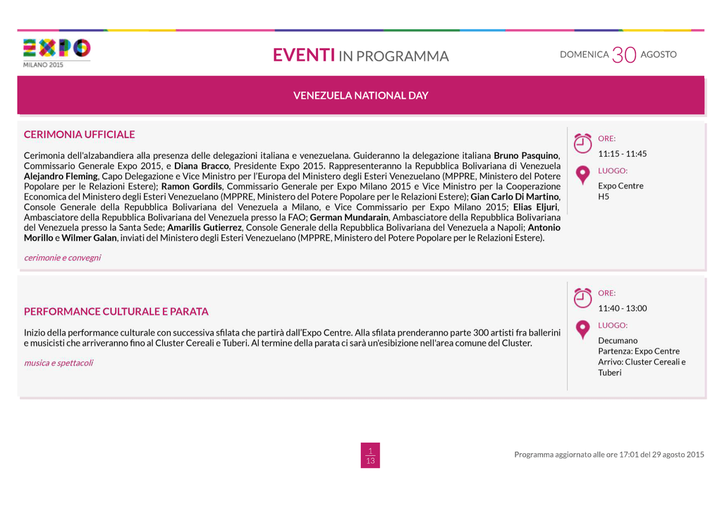 Documento. programma 30 agosto