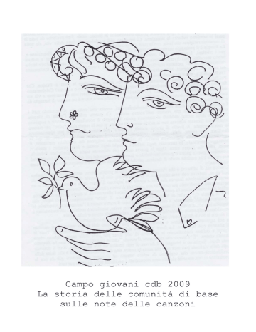 Campo giovani cdb 2009 La storia delle comunità di base sulle note delle canzoni MISA CAMPESINA NICARAGÜENSE testo di Ernesto Cardenal musica di Carlos Mejía Godoy 1975 CANTO DE ENTRADA CANTO D’INGRESSO Vos sos el Dios de los pobres, el Dios humano y sencillo, el Dios que suda en la calle, el Dios de rostro curtido, por eso es que te hablo yo así como habla mi pueblo, porque sos el Dios obrero, el Cristo trabajador. Tu sei il dio dei poveri Il dio umano e semplice Il dio che suda sul lavoro Col volto bruciato dal sole Per questo io ti parlo Col linguaggio del mio popolo Perché sei il dio operaio Il Cristo lavoratore. Vos vas de la mano con mi gente, luchas en el campo y la ciudad haces fila allá en el campamento para que te paguen tu jornal. Tu sei a fianco della mia gente Lotti nei campi e nella città Fai la fila come tutti Per riscuotere il tuo salario... Vos comés raspado allá en el parque con Eusebio, Pancho y Juan José, y hasta protestás por el sirope cuando no te le echan mucha miel. Tu mangi buttato lì nel parco con Eusebio, Pancho e Juan José e pure protesti per lo ‘sciroppo’ quando non ti ci mettono molto miele. Vos sos el Dios de los pobres... Tu sei il dio dei poveri … Yo te he visto en una pulpería instalado en un caramanchel, te he visto vendiendo lotería sin que te avergüence ese papel. Ti ho visto in una drogheria Seduto all’osteria, ti ho visto che vendevi biglietti di lotteria senza vergognartene. Yo te he visto en las gasolineras chequeando las llantas de un camión, y hasta petroleando carreteras con guantes de cuero y overol. Ti ho visto nei benzinai che battevi i cerchioni di un camion e anche a pulire le strade in guanti di cuoio e tuta. Vos sos el Dios de los pobres... Tu sei il dio dei poveri … CREO CREDO Creo señor firmemente que de tu pródiga mente todo este mundo nació, que de tu mano de artista, de pintor primitivista, la belleza floreció. Las estrellas y la luna, las casitas, las lagunas, Credo, Signore, fermamente che dalla tua prodiga mente tutto questo mondo sia nato, che dalla tua mano d'artista, di pittore "naif" sia fiorita la bellezza. Le stelle e la luna, le casette e la laguna le barchette che navigano sul fiume verso il mare le immense piantagioni di caffè, los barquitos navegando sobre el río rumbo al mar, los inmensos cafetales, los blancos algodonales y los bosques mutilados por el hacha criminal. Los inmensos los cafetales, los blancos algodonales y los bosques mutilados por el hacha criminal. Creo en vos, arquitecto, ingeniero, artesano, carpintero, albañil y armador. Creo en vos, constructor del pensamiento, de la música y el viento, de la paz y del amor. Yo creo en vos Cristo obrero, luz de luz y verdadero unigénito de Dios, que para salvar al mundo en el vientre humilde y puro de María se encarnó. Creo que fuiste golpeado, con escarnio torturado, en la cruz martirizado siendo Pilatos pretor, el romano imperialista, puñetero y desalmado, que lavándose las manos quiso borrar el error. El romano imperialista … Creo en vos, ... Yo creo en vos compañero, Cristo humano, Cristo obrero, de la muerte vencedor. Con tu sacrificio inmenso Engendraste al hombre nuevo para la liberación. Vos estás resucitando en cada brazo que se alza para defender al pueblo del dominio explotador. Porque estás vivo en el rancho, en la fábrica,en la escuela, creo en tu lucha sin tregua, creo en tu resurrección… le bianche piantagioni di cotone e i boschi mutilati dall'ascia criminale le immense piantagioni di caffè, le bianche piantagioni di cotone e i boschi mutilati dall'ascia criminale Credo in te, architetto, ingegnere, artigiano, carpentiere fabbro e calafato. Credo in te costruttore di pensiero della musica e del vento, della pace e dell'amore. Credo in te, Cristo operaio, luce della luce e vero unigenito di Dio, che per salvare il mondo nel ventre umile e puro di Maria si è incarnato. Credo che fosti colpito e con accanimento torturato, sulla croce martirizzato sotto Ponzio Pilato, quel romano imperialista e oppressore senz'anima che lavandosi le mani volle cancellare l'errore quel romano imperialista … Credo in te, Credo in te compagno, Cristo umano, Cristo operaio, vincitore della morte. Col tuo sacrificio immenso generasti l'uomo nuovo per la liberazione. Tu stai risuscitando in ogni braccio che si alza per difender il popolo dal dominio sfruttatore Perché sei vivo nella fattoria, nella fabbrica, nella scuola credo nella tua lotta senza tregua, credo nella tua risurrezione. CHIESA CHIESA Testo e musica: Giovanna Marini - 1967 Chiesa, Chiesa m’hai creato e m’hai distrutto ma Dio io non l’ho raggiunto piazzata tra me e lui come una pietra tombale mi tratti da morta per potermi un giorno resuscitare. Chiesa, Chiesa m’hai creato e m’hai distrutto … Guardi ai cattolici con scherno e disprezzo quelli San Vincenzo e dieta il Venerdì che leggono l’Osservatore Romano e rubano senza che gli tremi la mano Sono nata cattolica e cattolica credente, fanno la comunione ostentatamente sentendosi gli ho solo un pensiero fisso nella mente eletti tra tutta la gente distruggere la Chiesa. gridano allo scandalo se due innamorati fanno Andavo a scuola, a scuola dalle suore l’amore senza essere sposati e a Messa portavo al posto del messale associano il concetto di peccato e di offesa solo con quello di carne lesa le piccole edizioni foderate uguale con Ippolito Nievo Pirandello, usano a sangue freddo un sacramento pur di avere un appalto o una poltrona in parlamento; Pavese, gli amanti di Lady Chatterley scritto in inglese per non accettare tranquilla di gridi «farisei, impostori» poi ti accorgi fare che questo lo gridava anche Cristo morto e risorto quello che vuole la Chiesa nostra madre per ritrovarsi solo cattolico di sinistra. non per Dio, non per noi, ma per la propria Ma allora, come ne usciremo noi come faremo a sopravvivenza. distruggere la tomba che sapientemente la Chiesa dopo secoli di Chiesa, Chie