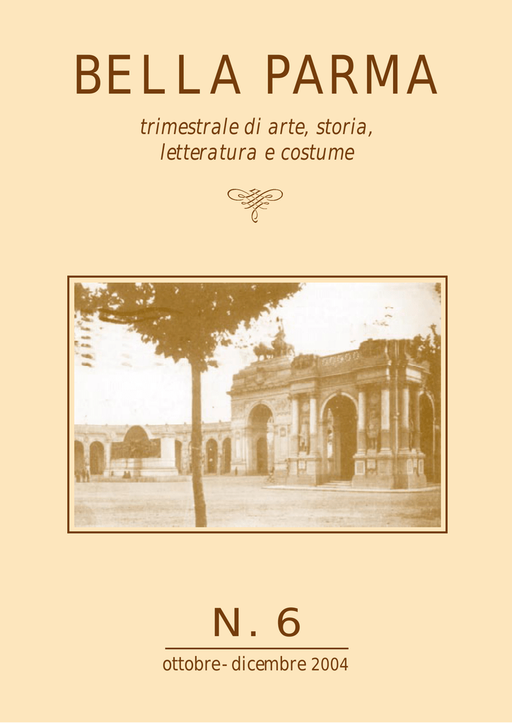 BELLA PARMA trimestrale di arte, storia, letteratura e costume N. 6 ottobre - dicembre 2004 BELLA PARMA trimestrale di arte, storia letteratura e costume N. 6 - ottobre-dicembre 2004 Autorizzazione del Tribunale di Parma n. 15/2003 *** Direttore responsabile: ANNA CERUTI BURGIO ** Redazione: Via Buffolara, 22/24 - Parma *** Stampa: Casa editrice TECNOGRAFICA sas Via Buffolara 22/24 - Parma Tel. 0521/984896 - Fax 0521/944968 e-mail: [email protected] *** La collaborazione è gratuita e ad invito. Il materiale eventualmente inviato e non pubblicato, non sarà restituito. *** Distribuzione gratuita EDITORIALE Cari Lettori, con il 2005 inizia il nostro terzo anno di pubblicazione, che proseguiamo con lo stesso entusiasmo di sempre. Per la nostra città è un anno di sfide importanti: l’insediamento effettivo dell’Autorità per la sicurezza alimentare la pone al centro di interessi europei, e la consacra veramente capitale non solo della food valley ma anche della vita sociale e culturale. Una vocazione, quella europea, che Parma ha sempre avuto, fin dai tempi del ducato: i Farnese prima, i Borbone poi, hanno intrecciato rapporti coi regnanti di altri Stati, e hanno contribuito a darle quell’immagine raffinata e cosmopolita che incantava, fin dal Settecento, i viaggiatori e gli amanti dell’arte. Ecco perché, proprio ora che dobbiamo costruire un futuro importante, dobbiamo restare ancorati alle nostre radici storiche e culturali; ecco l’importanza di ricercare con amore il nostro passato, di valorizzare i nostri monumenti e le nostre peculiarità, per dare all’Europa un’immagine forte e ben caratterizzata. Gli articoli che qui di seguito pubblichiamo vogliono essere un contributo alla conoscenza e alla conservazione, nonché alla valorizzazione della nostra identità, anche negli aspetti più curiosi e quotidiani. Come al solito, gli autori spaziano su varie tematiche, tutte però volte a comporre un mosaico coerente, un quadro vivo della nostra Parma. Le sfide che ci attendono non sono solo economiche o organizzative, ma culturali: da qui una sollecitazione ai nostri amministratori a porre grande attenzione alle numerose realtà di volontariato culturale, spesso poste in secondo piano rispetto al volontariato sociale. Investire sulla cultura vuol dire investire sullo sviluppo, perché senza cultura non c’è progresso di sorta. Molte volte, invece, si confonde l’“evento” di tipo mondanopubblicitario col fare cultura, che è cosa diversa, anche se meno appariscente. Fare cultura vuol dire infatti creare problematiche, riflettere, costruire un sistema che duri nel tempo al di là dell’apparire e delle mode momentanee. L’invito è quello di lasciare da parte i personalismi e le vanità per collaborare tutti insieme al progetto Parma. ANNA CERUTI BURGIO Direttore responsabile Bella Parma M 1 i rivedo bambino, a Parma, mentre s’inolce, i mandarini, i ciuffi delle verdure, il rosso trano gli anni Trenta. Risento il frastuono di ruote sfrontato dei peperoni, il soffuso viola di certi carosse e azzurre sulle selci di via voli a corolla densi di pittura sapiente. Farini, le carrozze rotolano via, i Io, no. Io fisso rapito il fruttivencavalli si eccitano al loro stesso dolo perché si erge a busto rigonscalpitare, i ferri degli zoccoli fio, porta il colletto spalancato sul sprizzano scintille, i landò collo taurino, riceve a gambe sono neri e traballanti, la larghe e ben salde sulle piancapotta incerata si scuote, il te, è sanguigno, ciuffato, la vetturino si regge a cassetta voce come ne ha Merlino puntando i piedi, certe volnella baracca dei burattini di te ha una bombetta nera Italo Ferrari, tutto scandito, calcata sugli orecchi, polvetutto impostato, quasi il parrosa, ammaccata. La carlare fosse una perenne vigirozza si trascina appresso il lia di canto, l’avvio di una rorotolìo, la sacchetta della manza tra carote, carciofi e biada, la frusta del cocchieinsalata alla ricciolina. Il re che fa i ghirigori di nonno mi dice, mi spiega, schiocchi, i passeggeri che mi scandisce quasi: “Vedi? forse saranno signore con la Questo signore è un coriveletta, chiamate a convesta”. Il nonno lo ripete tutte gni segreti come fossero genle volte, con la deferenza di GIORGIO TORELLI tildonne misteriose, dipinte che si riserva a un parmigiaa Parigi da De Nittis. Parma no di bella voce aduso alle è sempre un po’ Parigi. ne ha talora le luci d’acscene, convocato abitualmente a teatro per il trucqua sotto i ponti, il nostro torrente si atteggia a picco, il manto da cospiratore e la corazza. I coristi cola Senna, abbiamo i ponti che splendono di mutano sembianze ad ogni slargarsi di opera. I lampioni la sera, i lumi si rispecchiano, la corcoristi sono intimi dei grandi tenori e delle belrente si colora, si stria di arancioni languidi lissime usignole. Spondeggiano Radames e e mossi. Parma adora farsi teatro, e così Violetta, esultano nelle stesse note, si recitare sempre e solo se stessa. addensano sullo sfondo come un cielo di nuvole da tregenda, e talora sono ***** il vento. Lo rifanno. Noi abbiamo molti Ecco, allora. Io sono un bambidischi dei grandi tenori. Mio nonno li no per mano di mio nonno, lui coi posa reverente sul grammofono, gira la baffoni bianchi e la mazza dal manimanovella, controlla la puntina, casoco d’argento, anche il monogramma; mai ne preleva una nuova da una scaio col paltoncino su misura, tagliato e cucito daltolina di latta lucida. Mio nonno chiude gli oclo zio sarto. chi quando il tenore comincia. Mio nonno si alE andiamo insieme per città, il signor Domelenta in poltrona, quasi un abbandono totale, apnico e nipotino. Ci fermiamo ai negozi dove mio pena il coro sgorga come la luna, lento e sononno intesse dialoghi e celie, lo rispettano lenne, o quando il coro irrompe quane lo favoriscono. E quando siamo al cospetto una tuonata da brivido e signoregto di una bottega odorosa e lustra di gia il destino, il fato, la sorte, il tramele, tutte allineat