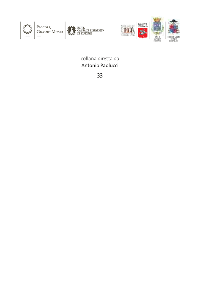 CITTÀ DI CASTIGLION FIORENTINO collana diretta da Antonio Paolucci 33 DIOCESI DI AREZZO CORTONA SANSEPOLCRO Pinacoteca Comunale e Museo della Pieve di San Giuliano a Castiglion Fiorentino Guida alla visita dei musei e alla scoperta del territorio a cura di Sabrina Massini CITTÀ DI CASTIGLION FIORENTINO DIOCESI DI AREZZO CORTONA SANSEPOLCRO Musei del territorio: la Val di Chiana Museums of the Territory: the Val di Chiana Pinacoteca Comunale e Museo della Pieve di San Giuliano a Castiglion Fiorentino Con il patrocinio di / Under the sponsorship of Ministero per i Beni e le Attività Culturali Enti promotori / Promoted by Ente Cassa di Risparmio di Firenze Regione Toscana Diocesi di Arezzo-Cortona-Sansepolcro Comune di Castiglion Fiorentino In collaborazione con / In collaboration with Direzione Regionale per i Beni Culturali e Paesaggistici della Toscana Soprintendenza per i Beni Architettonici e per il Paesaggio, per il Patrimonio Storico, Artistico ed Etnoantropologico della Provincia di Arezzo Provincia di Arezzo OmA – Associazione Osservatorio dei Mestieri d’Arte Realizzazione / Production Ente Cassa di Risparmio di Firenze – Area Progetti Culturali motu proprio Supervisione generale e curatela / General and curatorial supervision Barbara Tosti Registrar e coordinamento scientifico / Registrar and scientific coordination Paola Petrosino Comunicazione e Ufficio Stampa / Communication and Press Office Riccardo Galli Comitato Scientifico / Expert Committee Presidente / President Antonio Paolucci Agostino Bureca, Cesare Cantucci, Riccardo Fontana, Liletta Fornasari, Serena Nocentini, Elena Pianea, Maddalena Ragni, Paola Refice, Flora Zurlo Guida alla Pinacoteca Comunale e al Museo della Pieve di San Giuliano a Castiglion Fiorentino a cura di / edited by Sabrina Massini Testi / Texts by Sabrina Massini, Michele Tocchi Itinerari a cura di / Itineraries by Federica Faraone, Maria Pilar Lebole, Lucia Mannini, Sabrina Massini Editing e apparati / Editorial and reference coordination by Cristina Corazzi Cartografia e illustrazioni / Maps and illustrations by Massimo Tosi Traduzioni per l’inglese / English translation English Workshop Progetto grafico / Graphic project Polistampa Campagna fotografica a cura di / Photography Il Grandangolo di Alessandro Pierozzi, Castiglion Fiorentino Crediti fotografici / Photographic credits Archivio fotografico della Soprintendenza per i Beni Architettonici e per il Paesaggio, per il Patrimonio Storico, Artistico ed Etnoantropologico della Provincia di Arezzo Archivio Storico del Comune di Cortona Ufficio per i beni culturali e l’arte Sacra della Diocesi di Arezzo-Cortona-Sansepolcro Ringraziamenti / Acknowledgments Don Marcello Colcelli, Carmelo Serafini, Fabio Salvietti, Maurizio Tommasini www.piccoligrandimusei.it In copertina / On the cover : Luca Signorelli, Compianto su Cristo morto (part.), fine secolo xv Castiglion Fiorentino, Museo della Pieve di San Giuliano © 2012 Edizioni Polistampa Via Livorno, 8/32 - 50142 Firenze Tel. 055 737871 (15 linee) - [email protected] - www.leonardolibri.com ISBN 978-88-596-1119-6 Presentazioni Jacopo Mazzei Presidente dell’Ente Cassa di Risparmio di Firenze A ttraverso il progetto “Piccoli Grandi Musei” si ricompone un mosaico di eccellenze nel campo dei beni storici ed artistici che illustra, con l’adeguato supporto didattico di mostre, cataloghi e guide, la straordinaria ricchezza culturale delle varie realtà toscane sulle quali si è posata l’attenzione degli enti istituzionali e degli studiosi, che hanno reso così un servizio prezioso alla collettività in termini di conoscenza e valorizzazione del patrimonio diffuso sul territorio. È un percorso iniziato alcuni anni fa su iniziativa dell’Ente Cassa di Risparmio di Firenze che, nel corso del tempo, ha associato al progetto un numero sempre più ampio di soggetti pubblici e privati in un grande sforzo teso a un unico obiettivo di crescita civile. I riflettori si sono accesi quest’anno su Arezzo e il suo comprensorio, da Cortona a Castiglion Fiorentino, a Lucignano, a Foiano della Chiana, in una sequenza davvero significativa di eventi condivisi con la Regione, la Provincia, le Soprintendenze, la Diocesi e tutti i Comuni coinvolti nell’operazione. Personalità quali l’Angelico, Piero della Francesca, Bartolomeo della Gatta e Luca Signorelli forniscono il termine di confronto e la misura di esperienze, dal punto di vista delle arti visive, che hanno prodotto pure in terra di Arezzo un consolidato orizzonte di valori da salvaguardare e ammirare. L’eco di recenti catastrofi naturali che si sono accanite su persone e beni deve farci riflettere che quanto ci è stato tra- smesso dai nostri predecessori può essere spazzato via nel volgere di pochi secondi e quindi l’esercizio della memoria, che si attua anche grazie al progetto “Piccoli Grandi Musei”, è un fondamentale strumento volto a rafforzare la nostra sensibilità identitaria col passato, consapevoli che nulla è immutabile e che perciò è importante affinare il rapporto di ciascuno di noi con quanto di bello è dato di vedere in ogni luogo dove siano state sprigionate dall’ingegno umano scintille di creatività, tali da stimolarci a dare il nostro piccolo o grande contributo per far sì che questo imperdibile patrimonio storico e culturale sia messo al riparo dagli insulti del tempo e dai danni prodotti dall’uomo e dagli eventi naturali. jacopo mazzei Enrico Rossi Presidente della Regione Toscana P er gli amanti dell’arte e del paesaggio ecco un’occasione davvero irripetibile per visitare piccoli musei locali, poco noti ai circuiti turistici tradizionali, ma ricchi di tesori straordinari e testimoni della storia e della cultura del territorio di cui fanno parte. Il progetto “Piccoli Grandi Musei”, giunto all’VIII edizione, approda in terra d’Arezzo, patria e rifugio di alcuni dei maggiori artefici del Rinascimento, da Beato Angelico a Piero della Francesca,